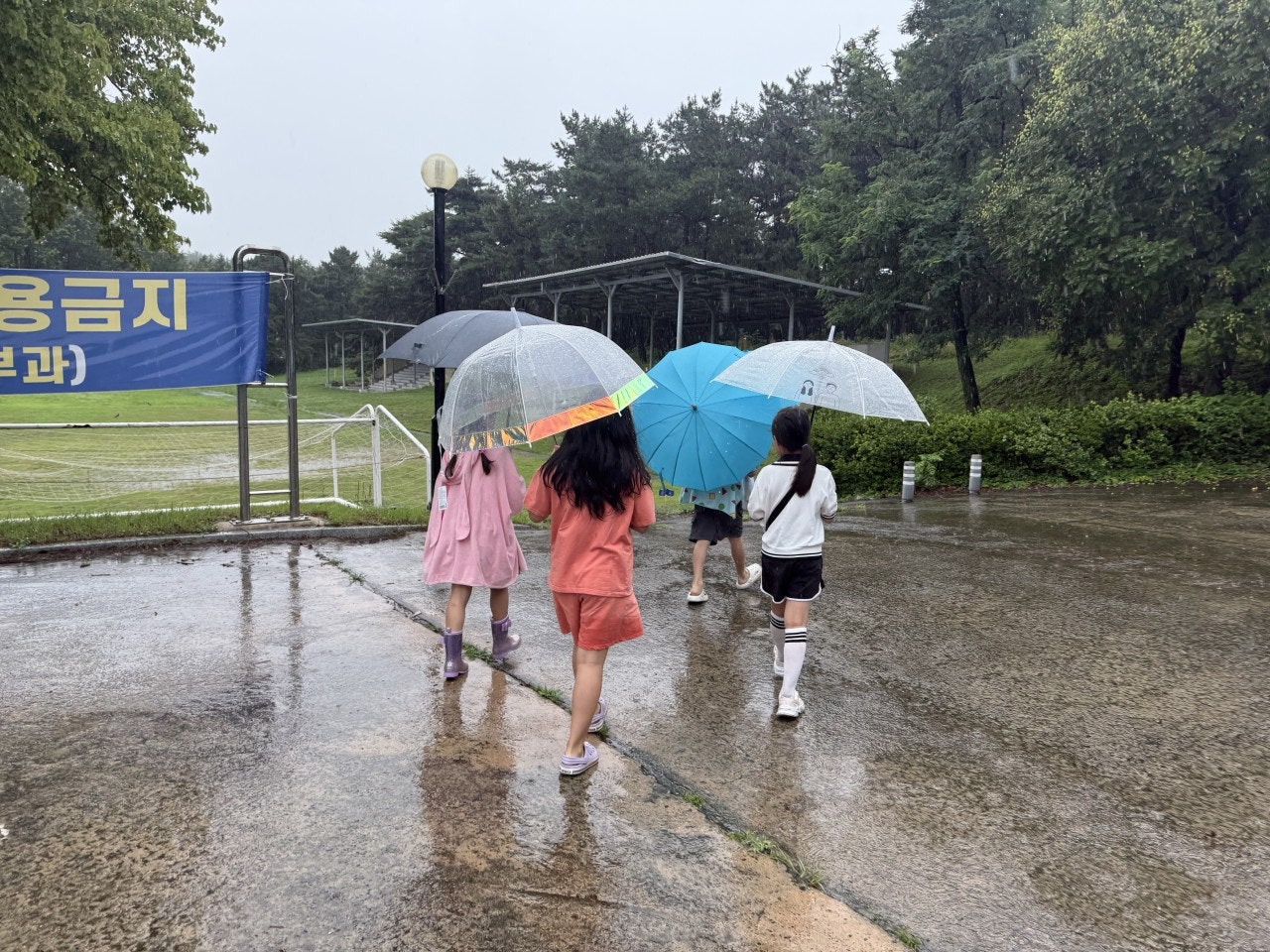 2025년 1학기 마지막 회차는 폭우 속에 진행되었습니다. 비가 신나는 친구도 있고, 비 맞는게 힘든 친구도 있었지만 미션을 수행하면서 회복되기도 합니다.