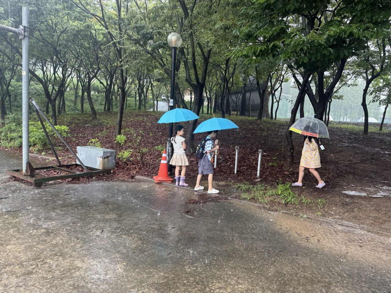 2025년 1학기 마지막 회차는 폭우 속에 진행되었습니다. 비가 신나는 친구도 있고, 비 맞는게 힘든 친구도 있었지만 미션을 수행하면서 회복되기도 합니다.