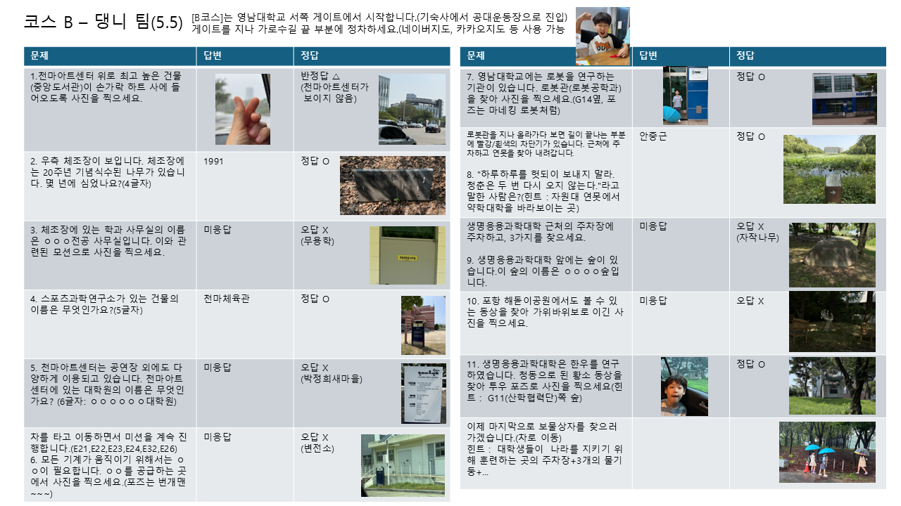- 3단계 : 보물상자의 비밀번호 찾기(각 팀별 코스 질문과 정답 참고)