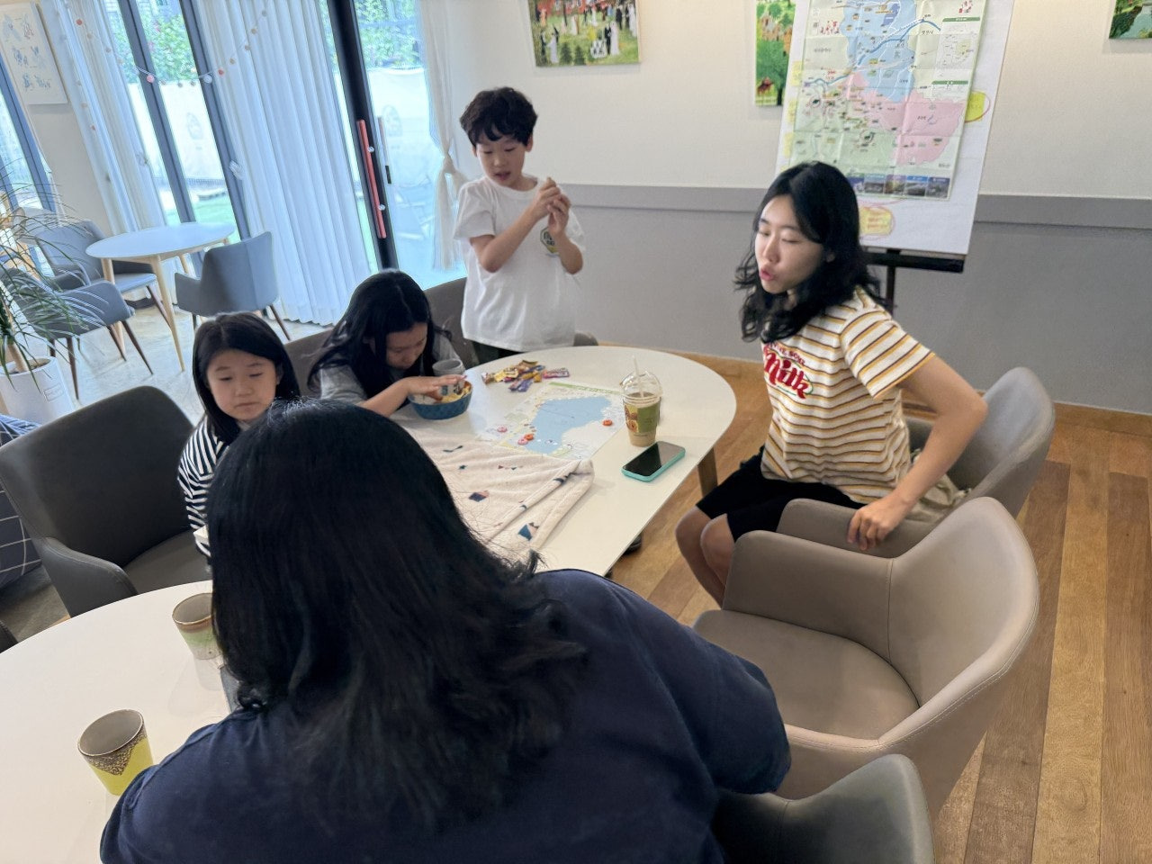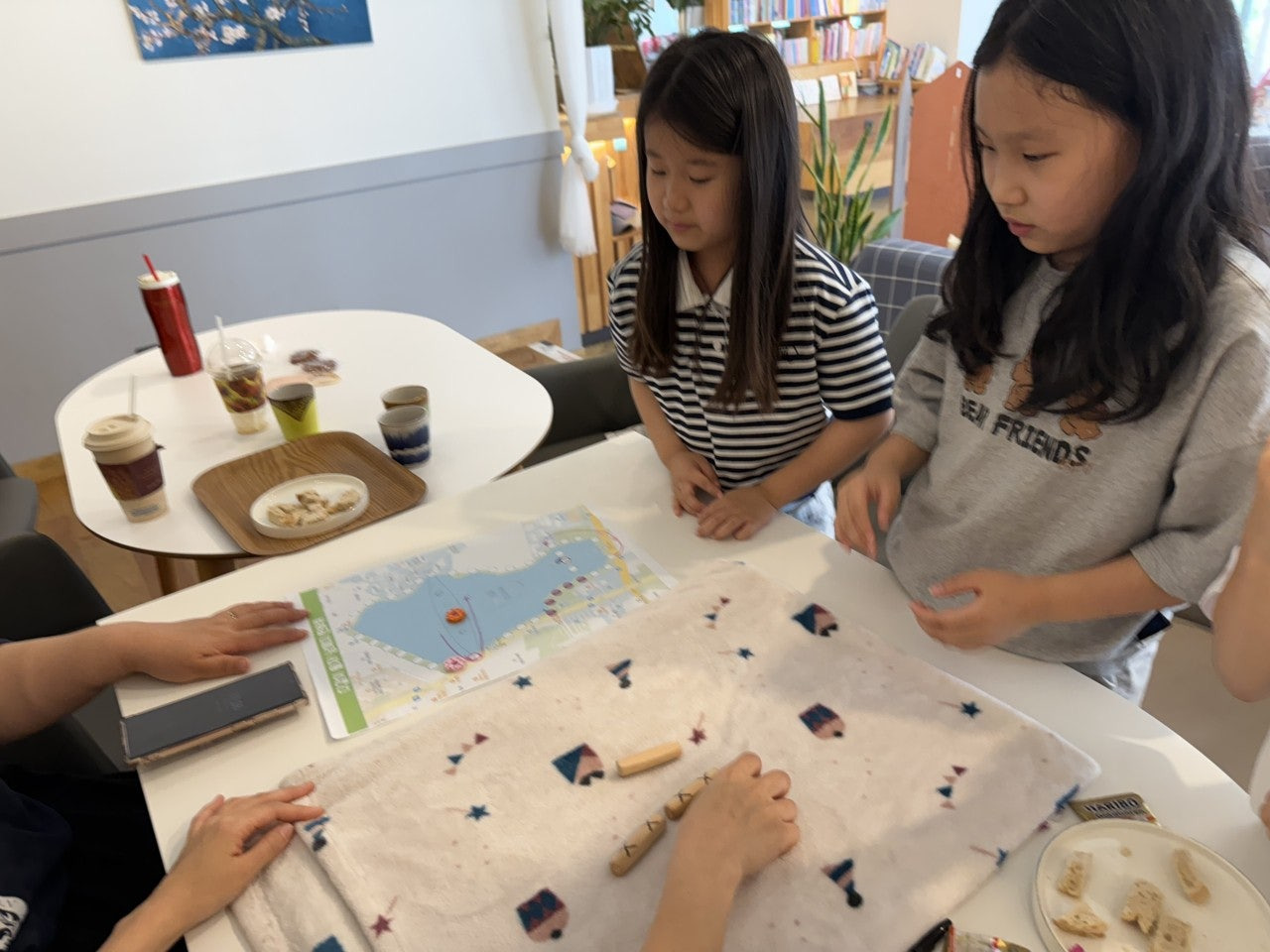 - 남매지 지도에 말판 만들고 윷놀이로 성인 vs 어린이로 경주하기