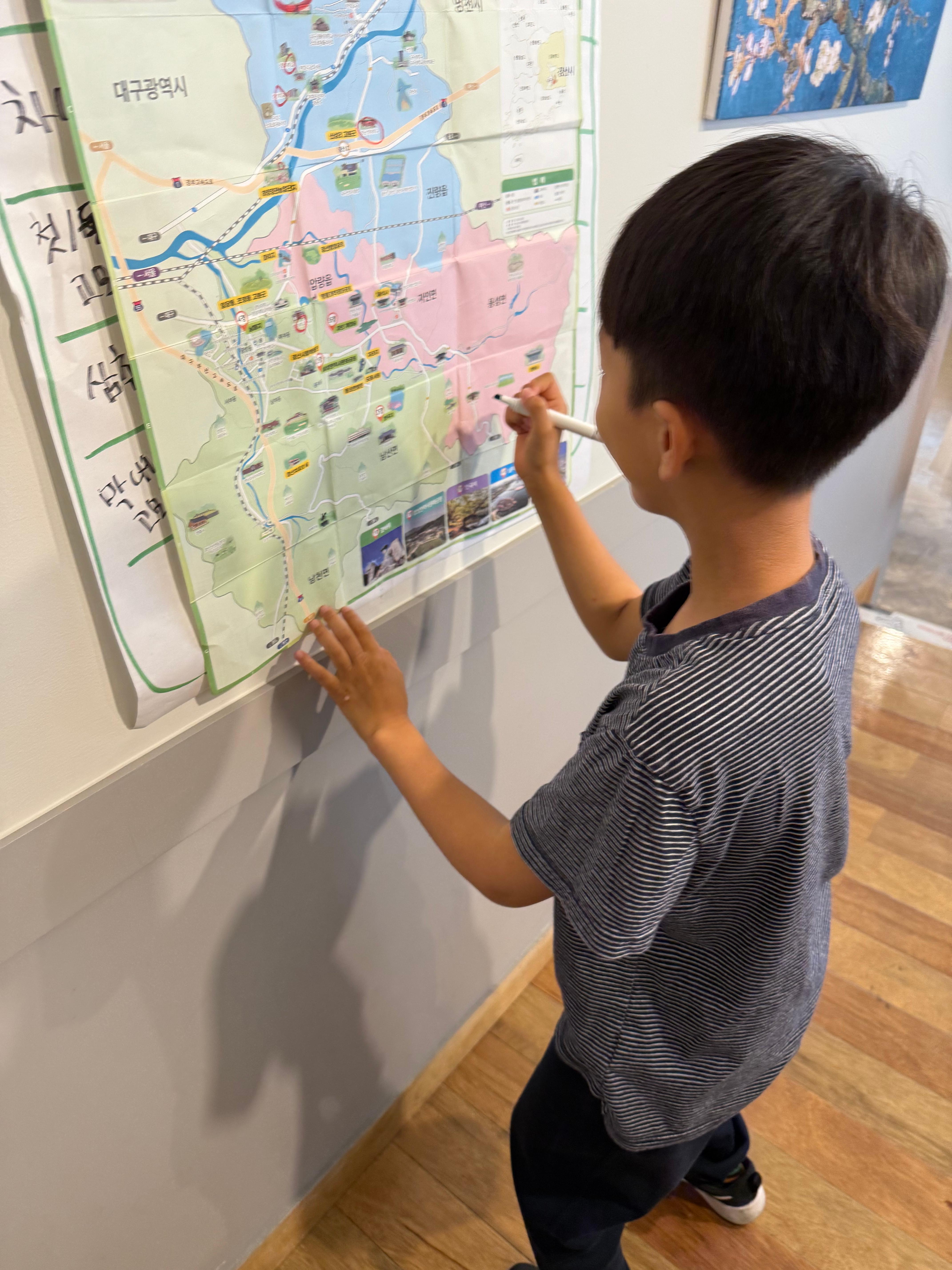 - 경산시 관광 지도에서 팀별 릴레이로 주제별 지명 찾기 : 삼성현의 도시로 관련 5곳, 대학 도시로서 대학 6곳, 옛 유적지로 사찰 6곳, 연못이 많아 연못 6곳