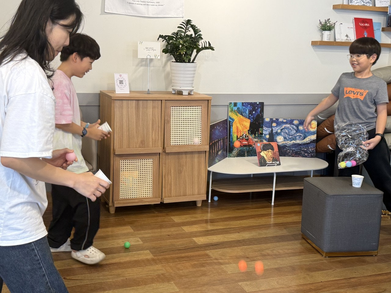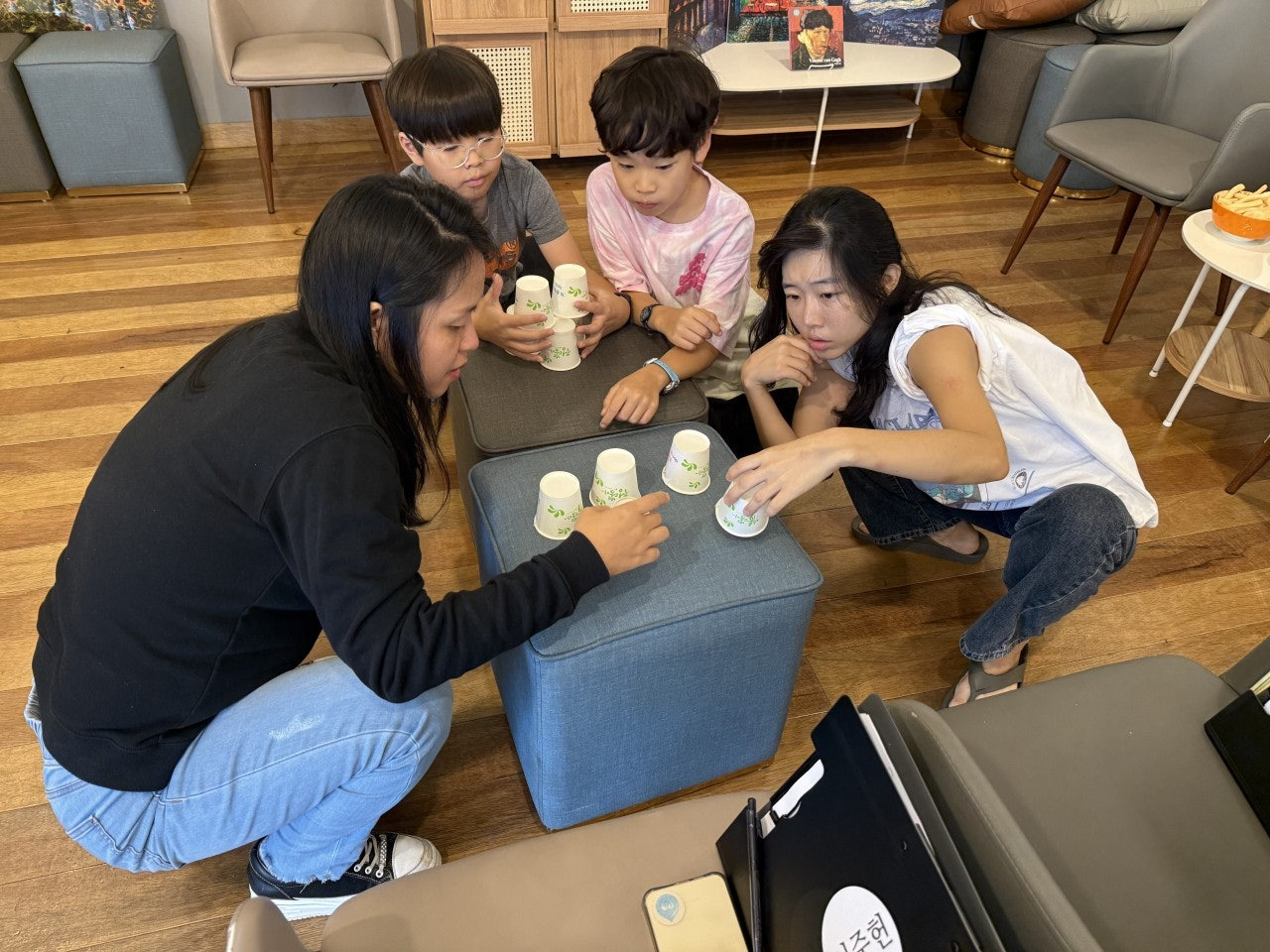 - 종이컵 토스 : 2인 1팀으로 바운드된 탁구공 받기