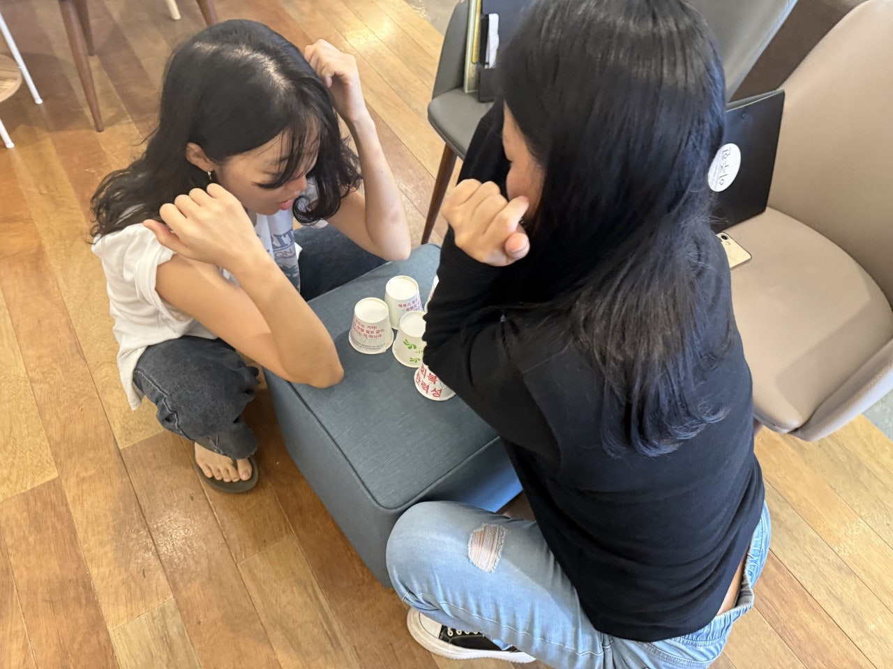 - 종이컵 토스 : 2인 1팀으로 바운드된 탁구공 받기