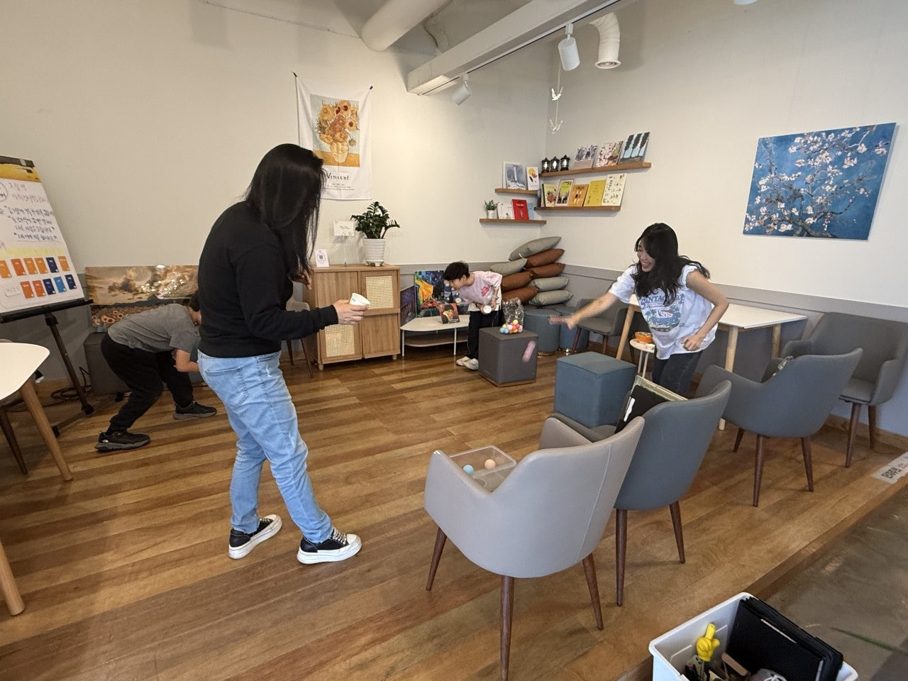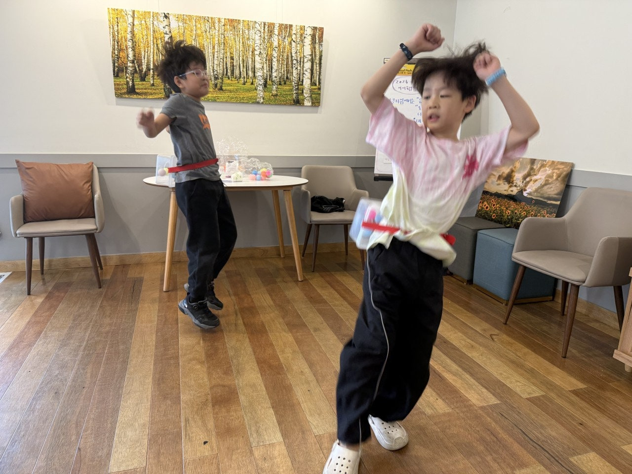 - 엉덩이 댄스 : 팀별로 받아놓은 탁구공을 상자에 넣고 흔들어서 빼기