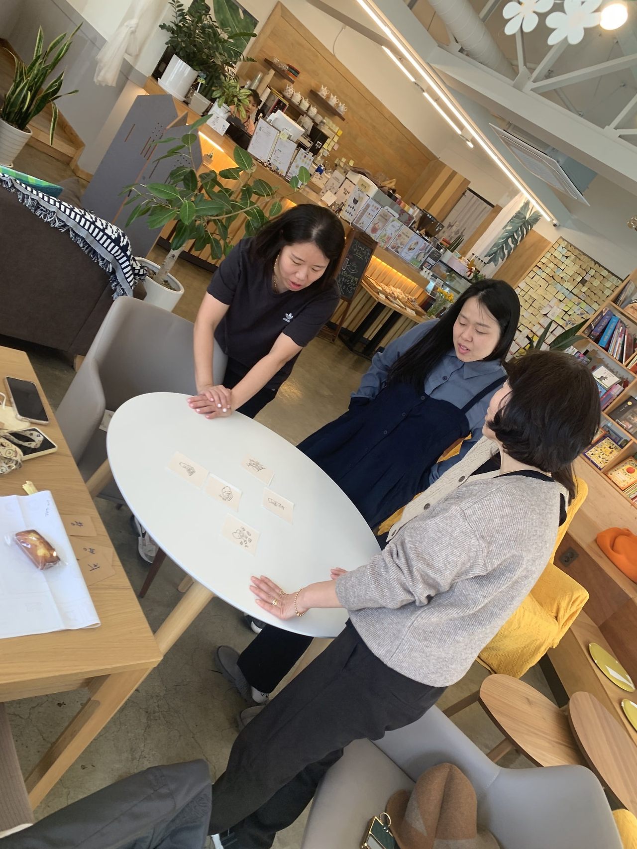3장의 네임카드에 자신의 이름을 한 글자씩 써서, 전체를 섞어 한 명당 3장씩 나눠주기, 가위바위보를 통해 진 사람은 자신의 카드를 다 보여주고, 서로 1장씩 뽑아서 자기 이름 완성하기
