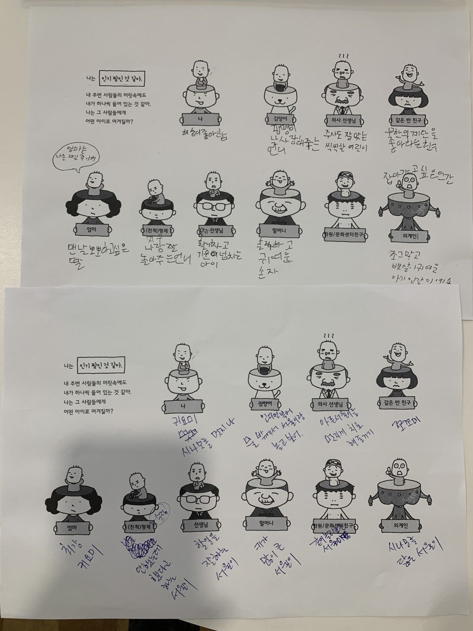 - 나는 내 주변 사람들에게 어떻게 보여질까 작성해 보기