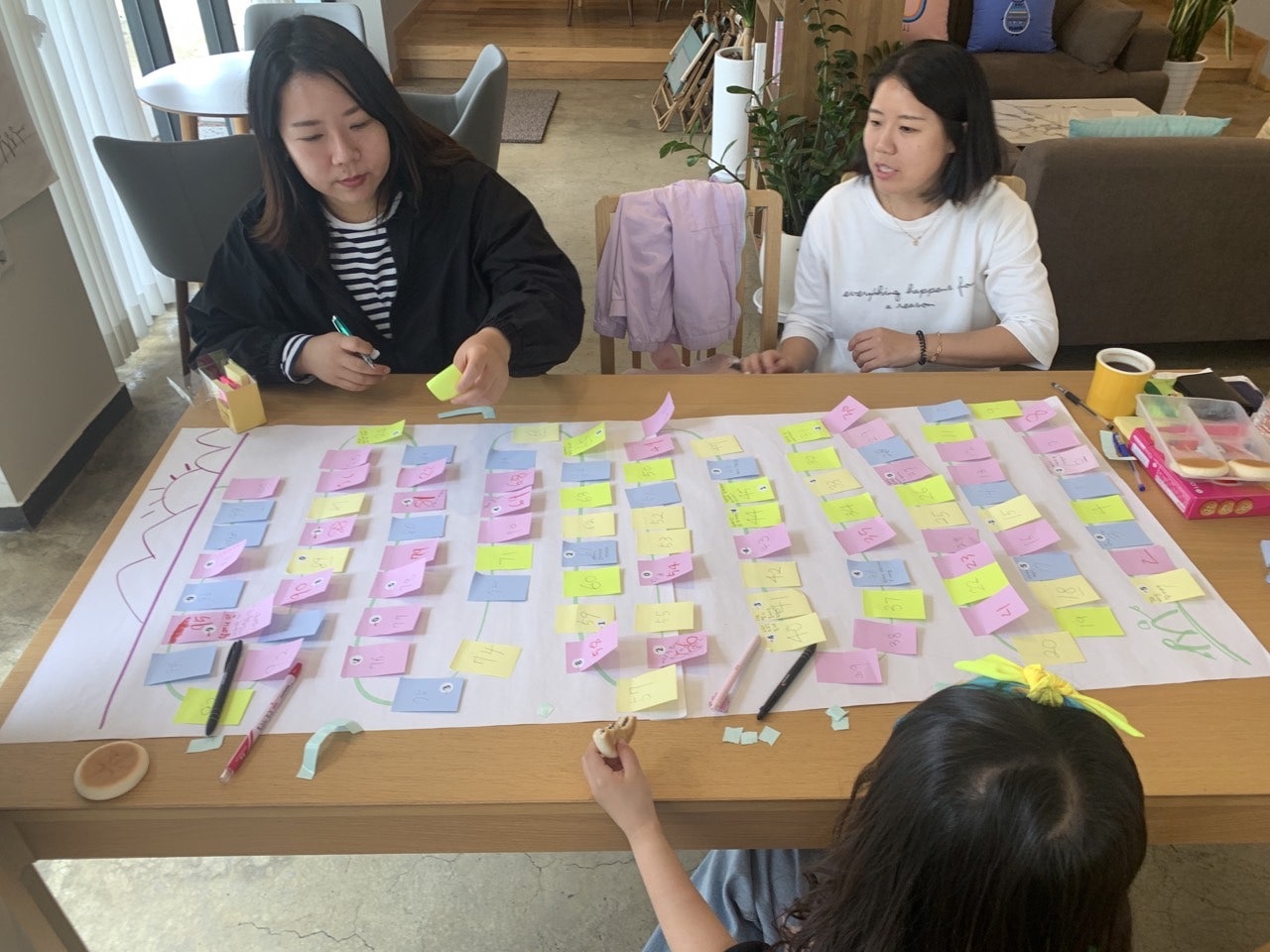 받은 번호 적기(포스트잇도 참여자별로 색상구분)