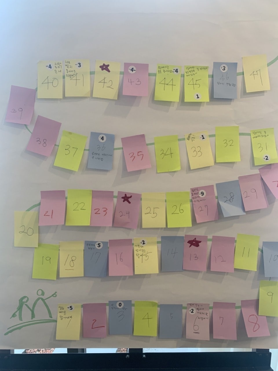 받은 번호 적기(포스트잇도 참여자별로 색상구분)