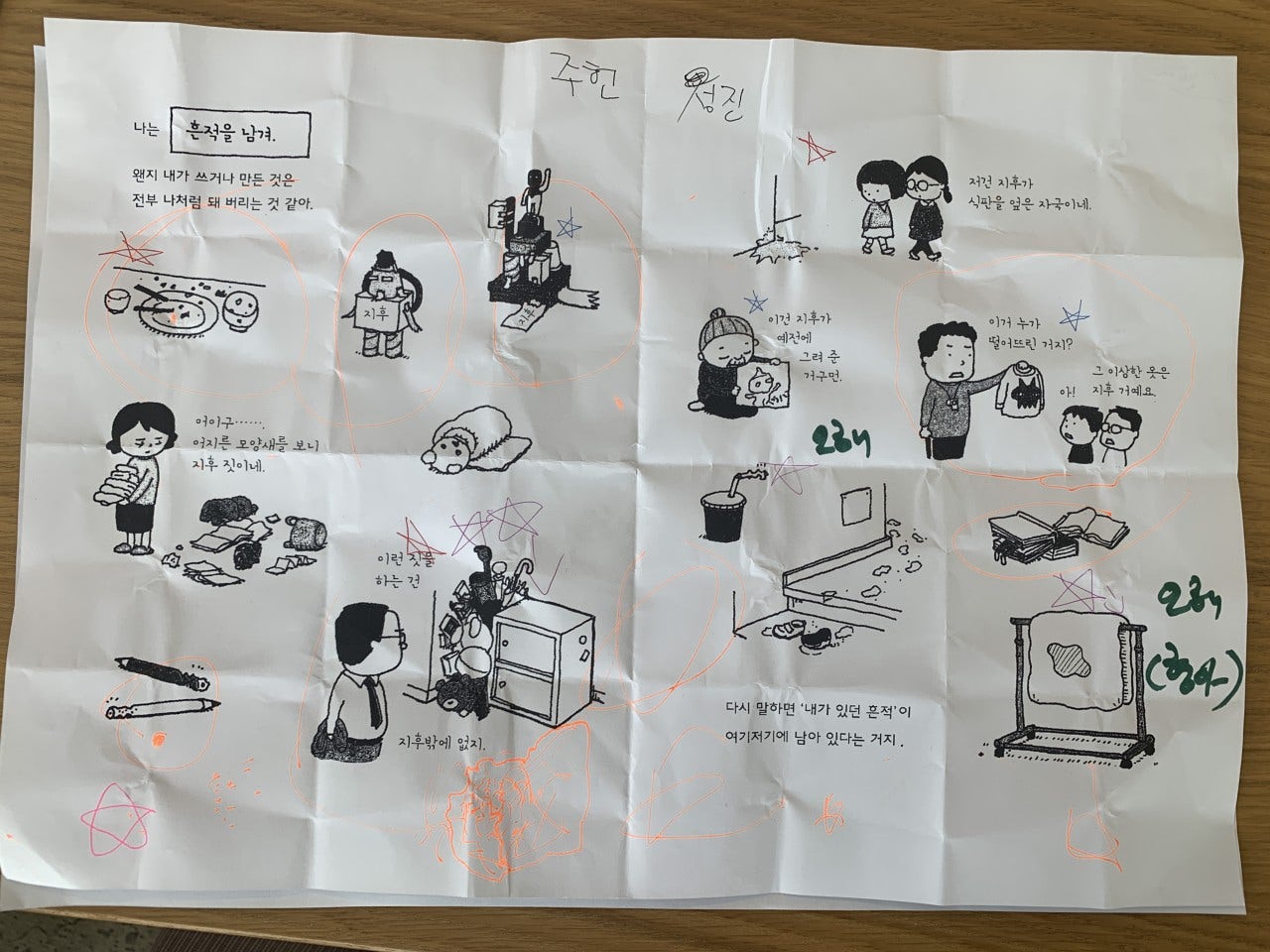 - 아이의 흔적과 관련된 페이지를 응용하여, 2팀으로 나눠 등에 글자를