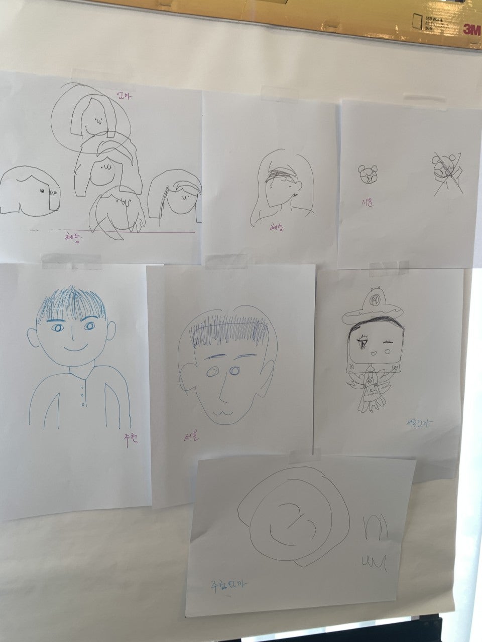 방을 보면서 얼굴그리기(종이는 내려다 보지 않기)