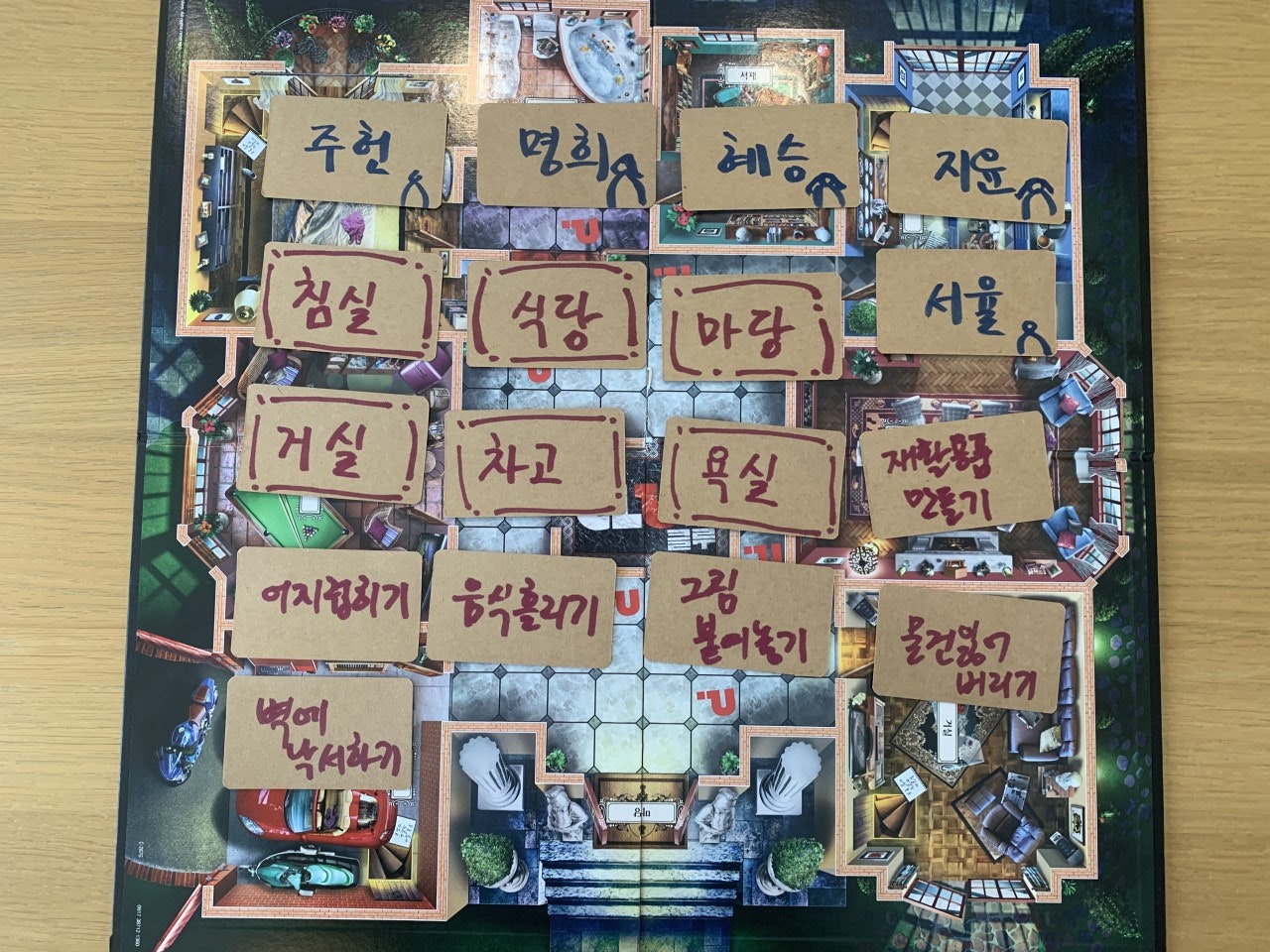 - 클루(CLUE) 보드게임을 응용하여, 주인공, 장소, 흔적을 찾아내는 추리 게임 진행