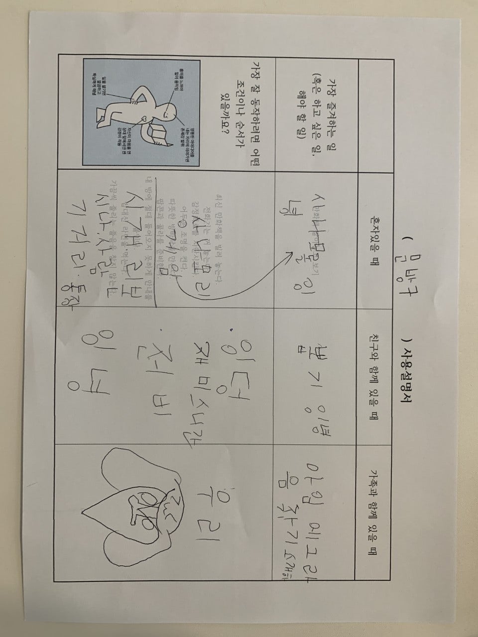 - 자녀들이 설명하는 내용을 통한 표현하는 방식 등을 알 수 있음..