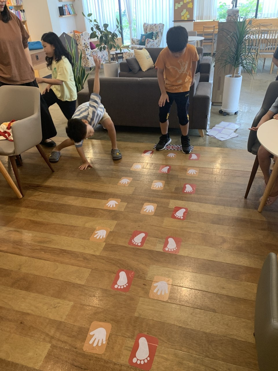 - 발바닥, 손바닥 그림을 무작위로 배열하여 한 칸이 진행해 보는 몸놀이
