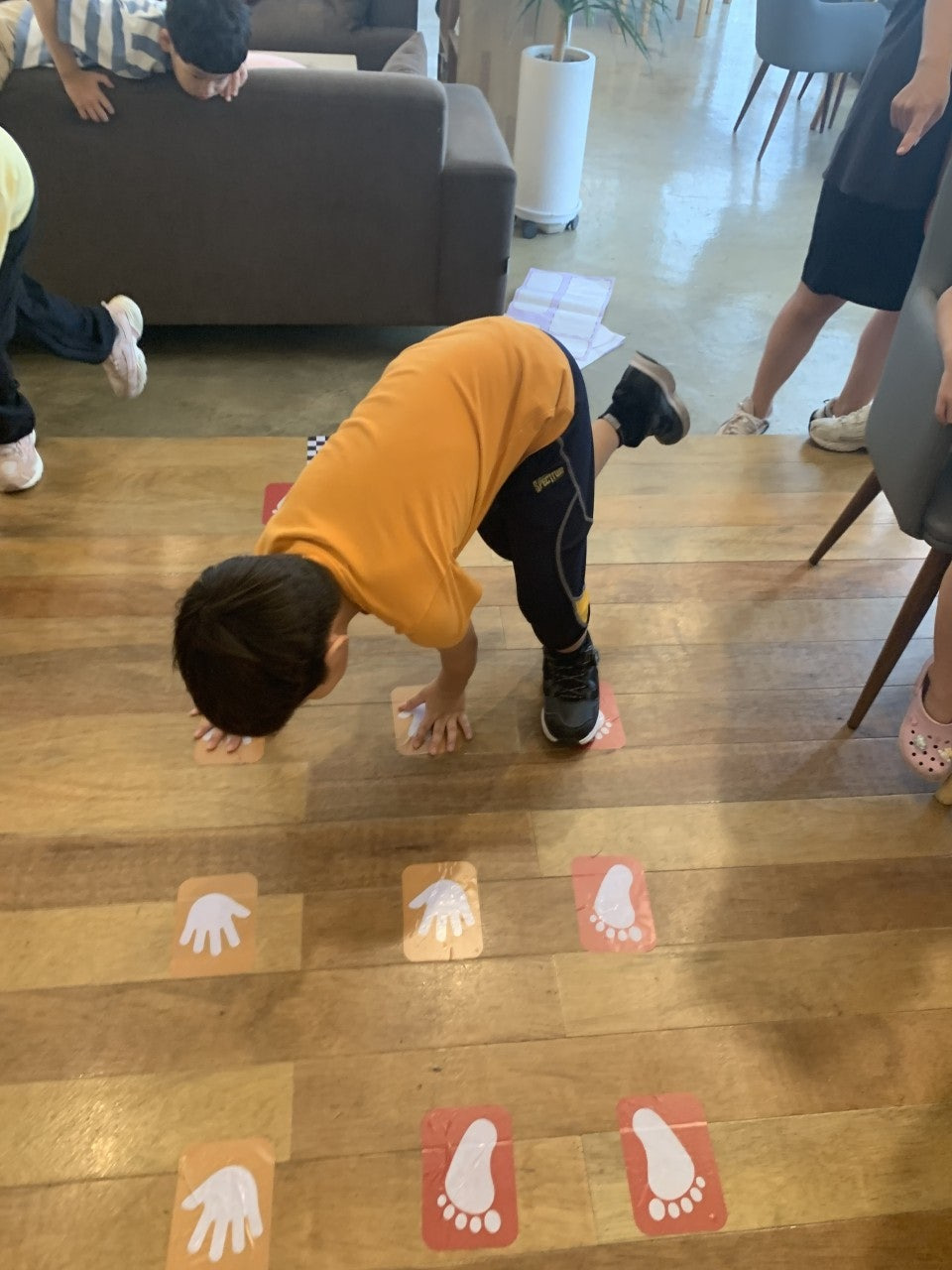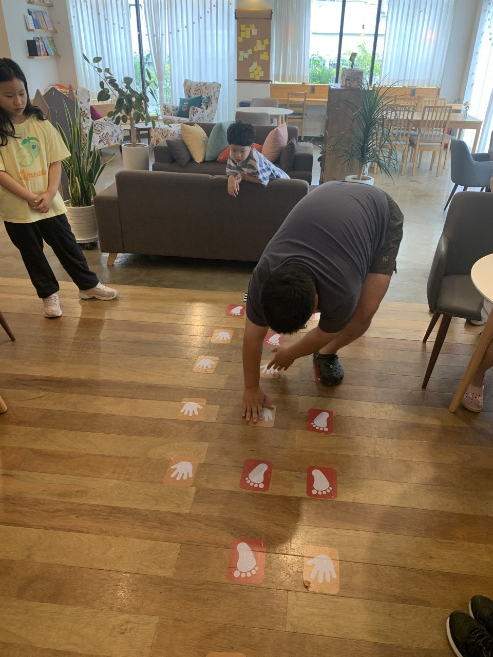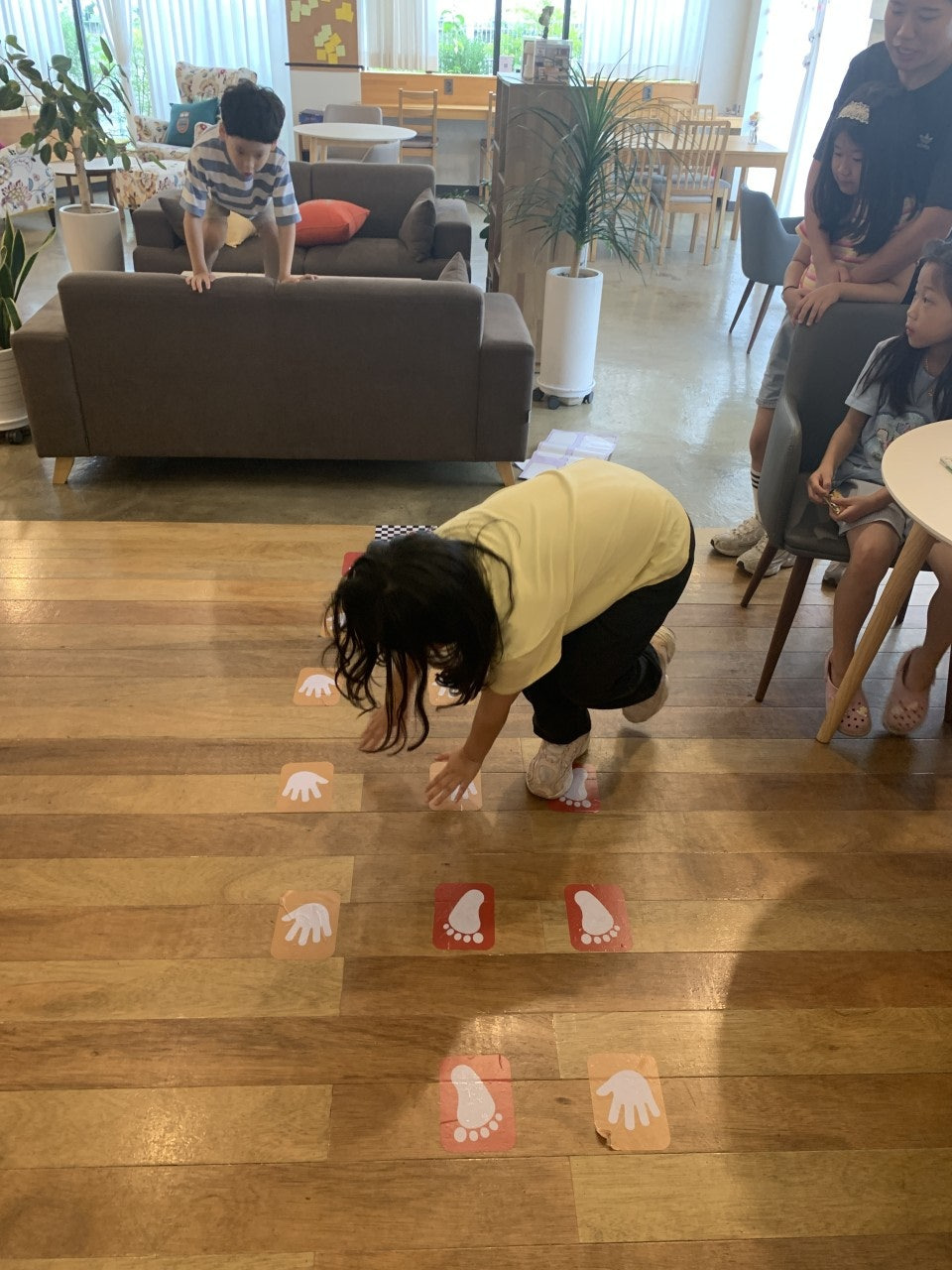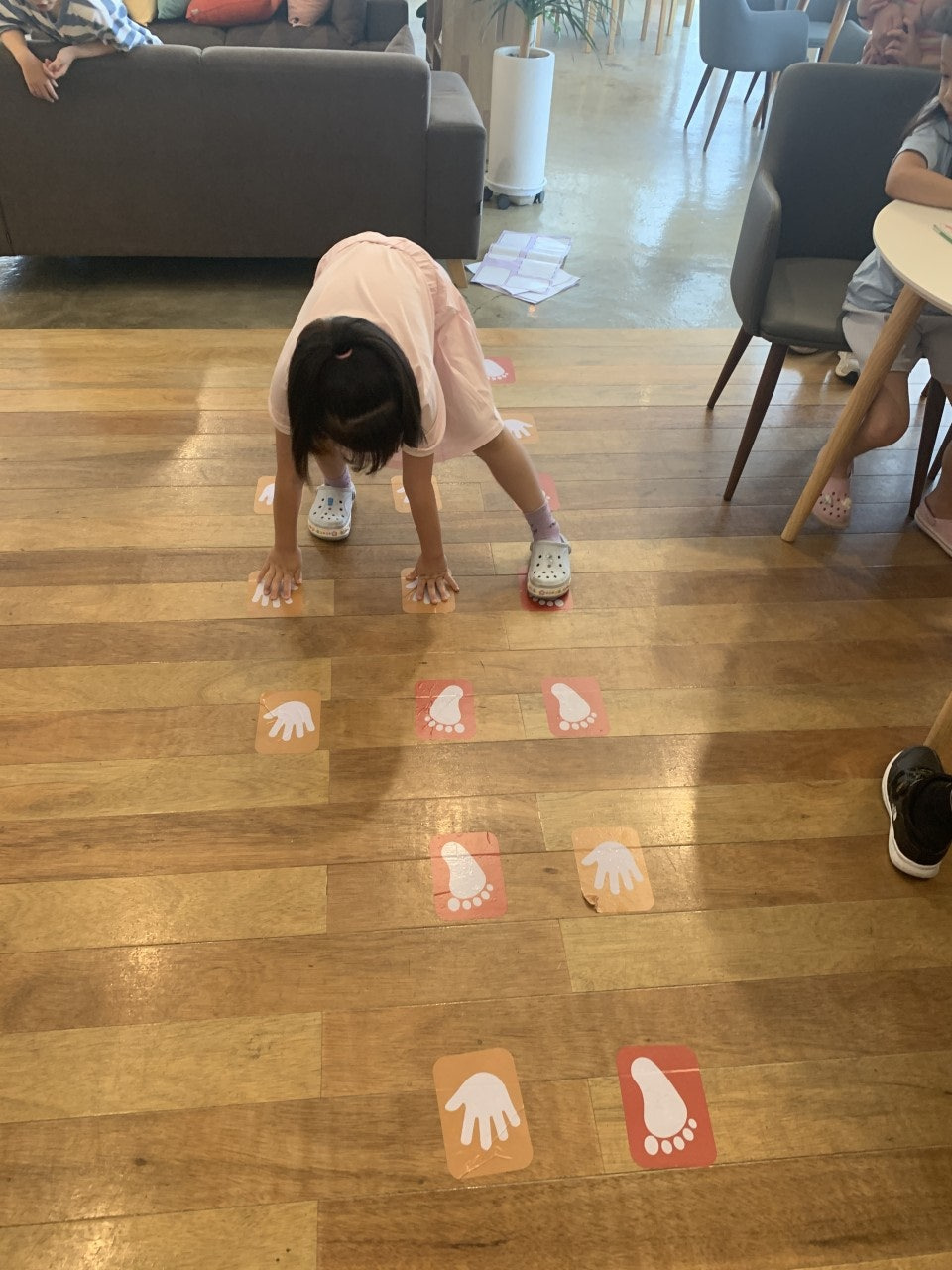 - 발바닥, 손바닥 그림을 무작위로 배열하여 한 칸이 진행해 보는 몸놀이