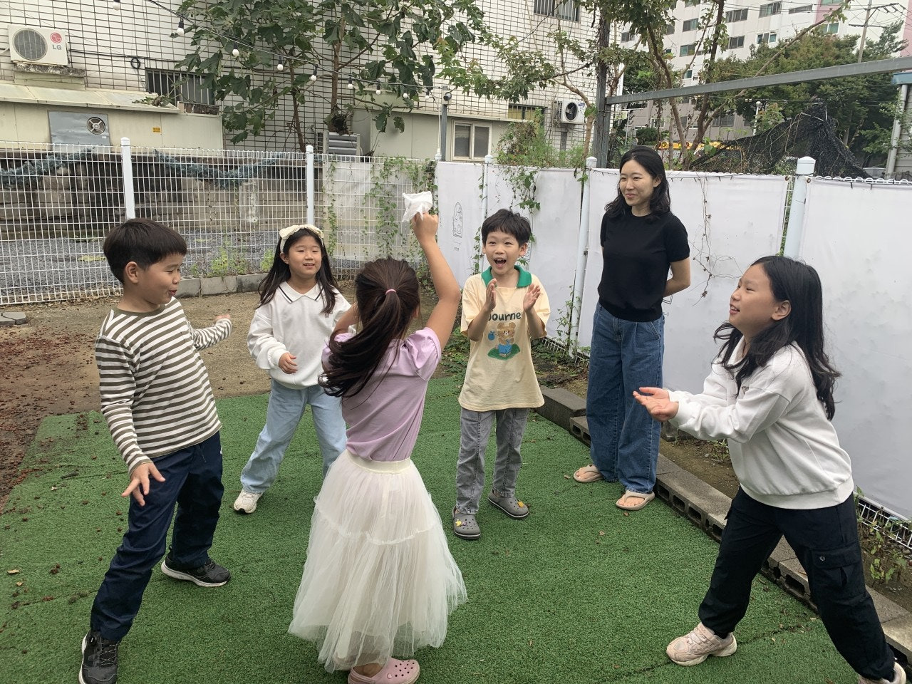 - 함께 둥글게 서고, 술래가 가운데서 티슈를 공중에서 놓으면서 다른 사람