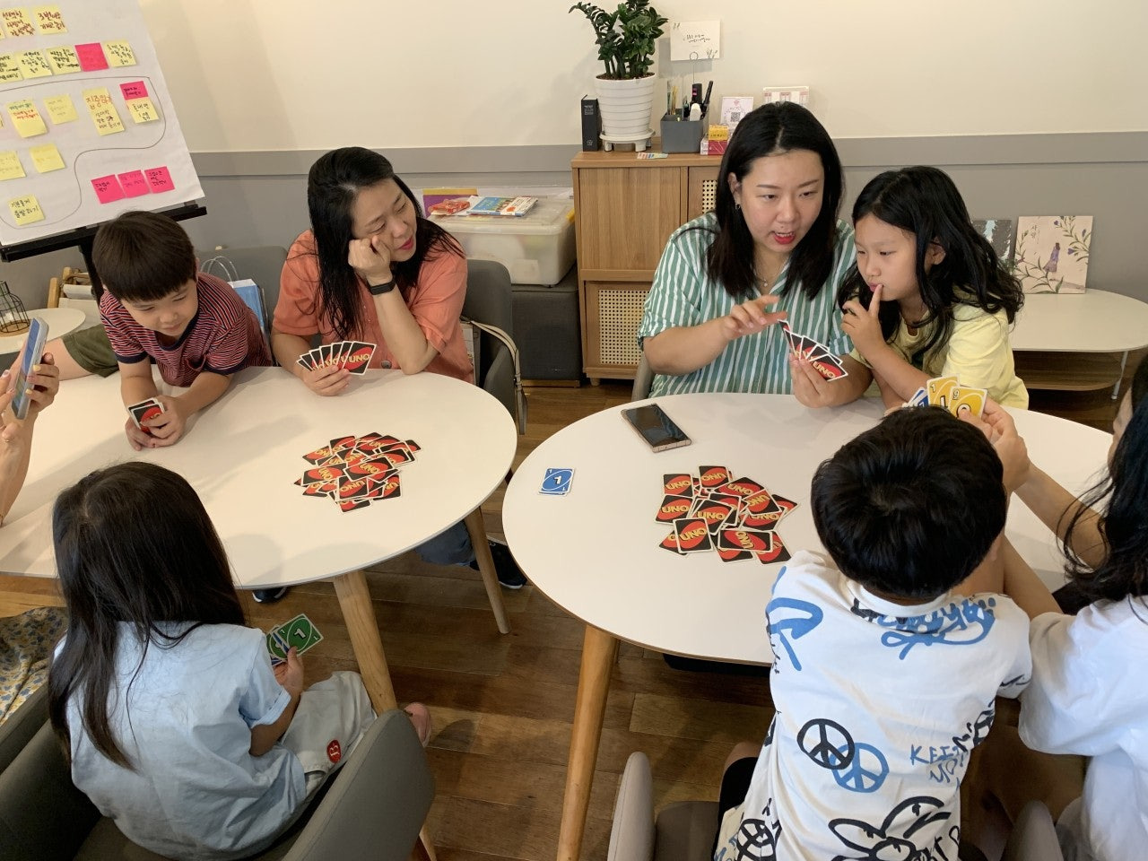 - 어른 vs 아이로 2팀을 만들어, 즐거운 장소, 즐거운 음식, 즐거운 일 등에 대해 서로 맞추는 게임