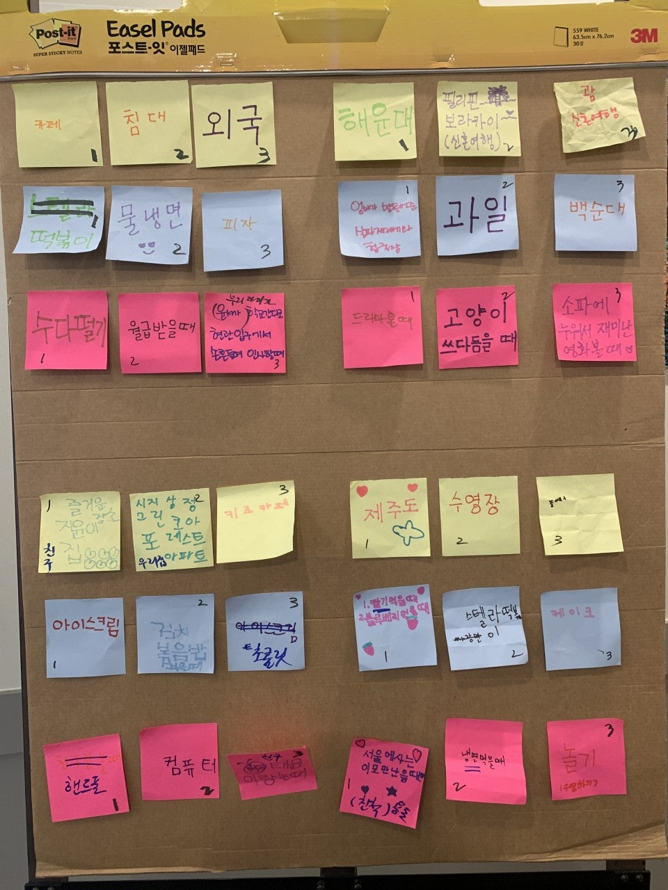 - 3가지 주제에 대해 1~3순위로 배열하여 서로 맞추기 게임