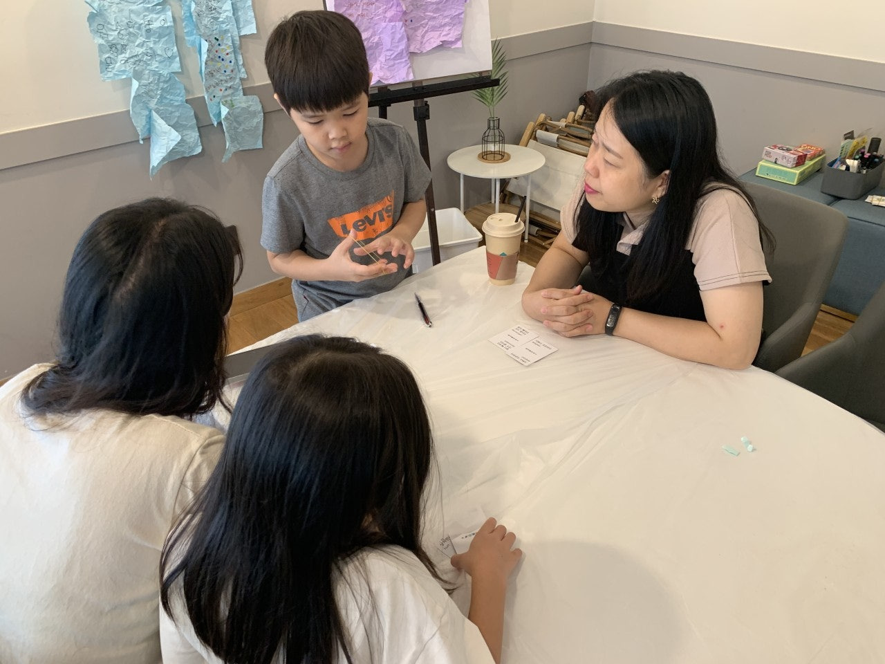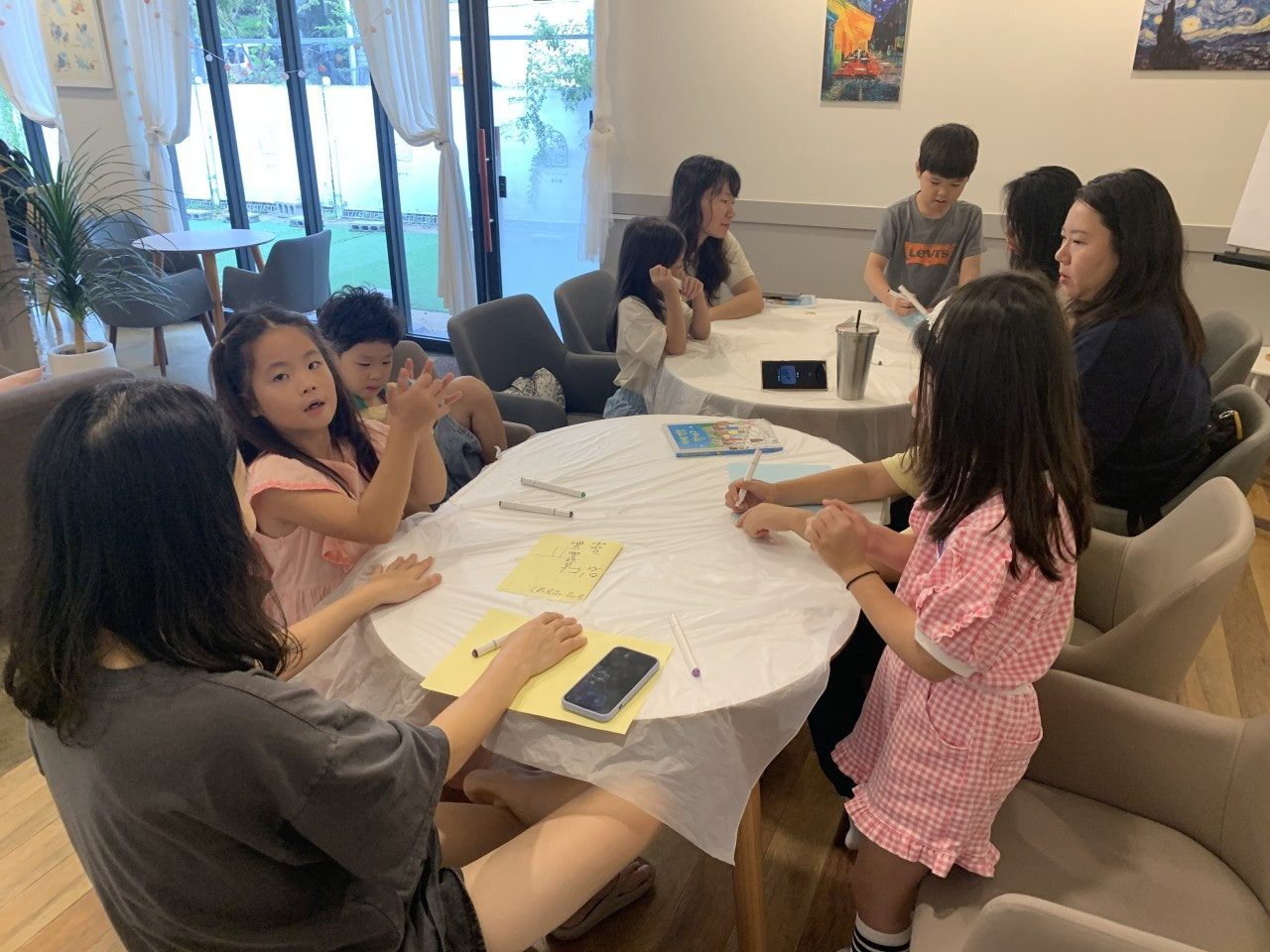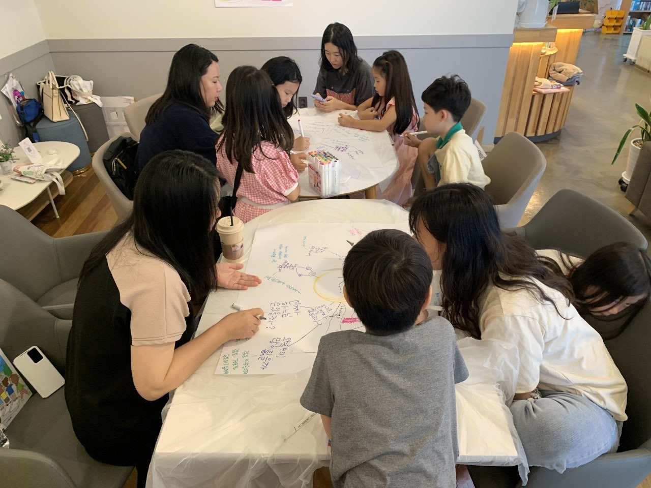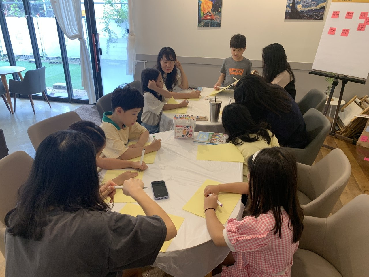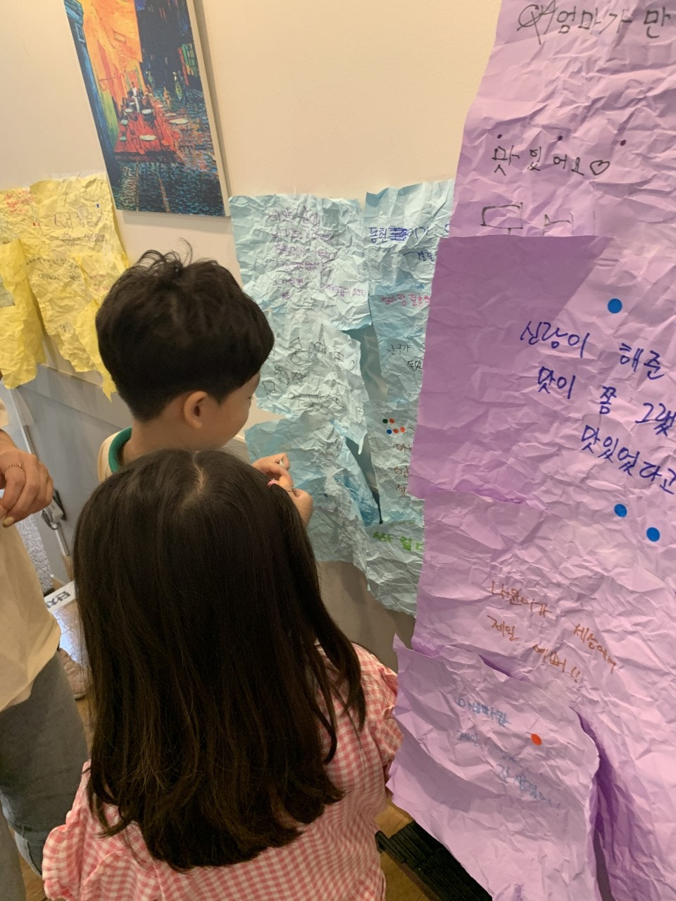 - 색상별로 작성할 때마다 공처럼 구겨서 제출하고, 랜덤으로 배정해서, 다시 작성해서 그 위에 공을 만들어 제출하고, 또 랜덤으로 배정해서 마지막으로 적상한 후 그 위에 공을 만들어 ⇒ 랜덤으로 뽑아서 내용 읽고 공유하기 ⇒ 공감투표하기