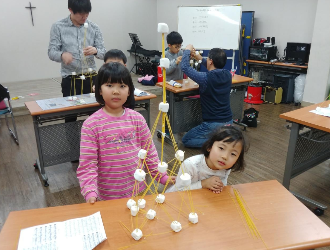- 제한 시간 내에 탑을 쌓고, 제일 꼭대기에는 마시멜로 하나를 세워야 합니다.