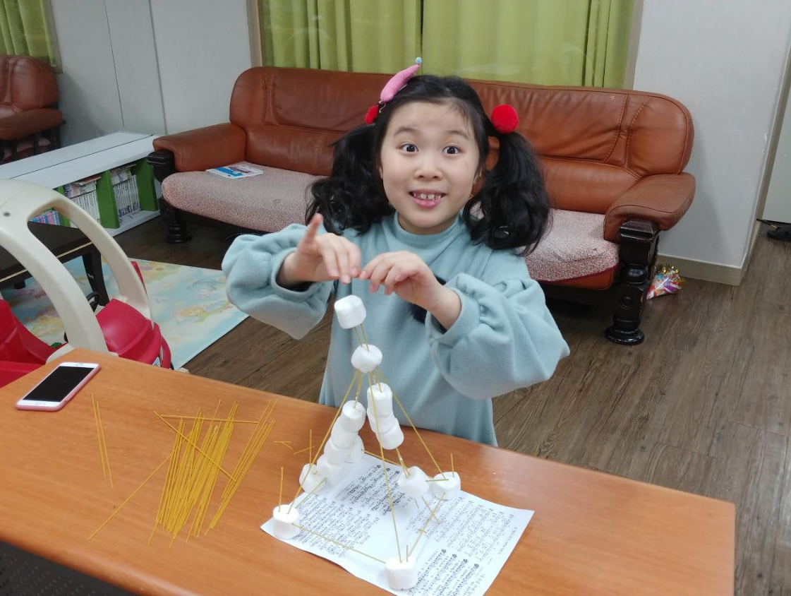 - 제한 시간 내에 탑을 쌓고, 제일 꼭대기에는 마시멜로 하나를 세워야 합니다.