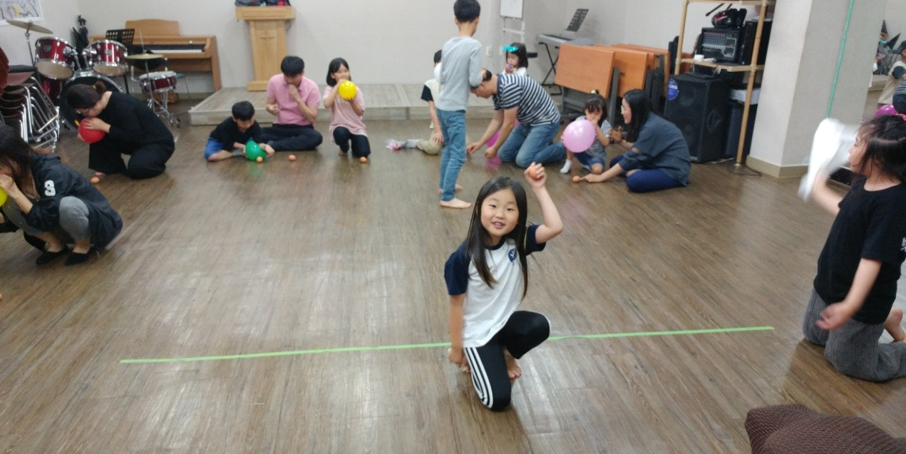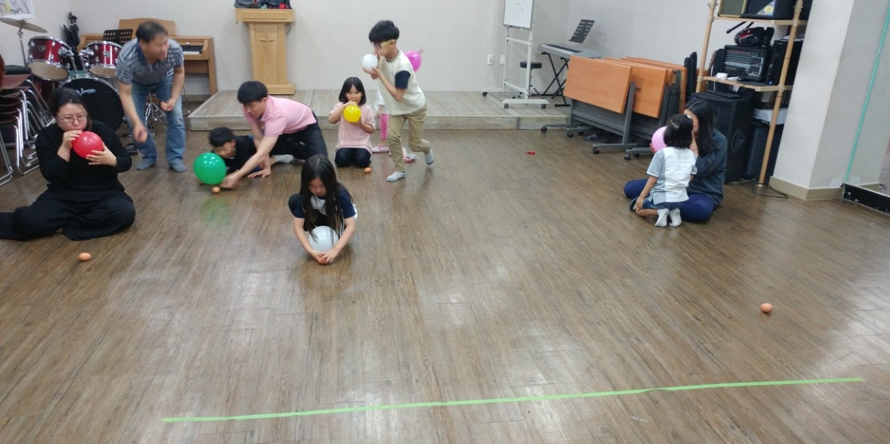 - 풍선에 바람을 넣어 빼면서 계란을 결승선까지 빨리 굴립니다.