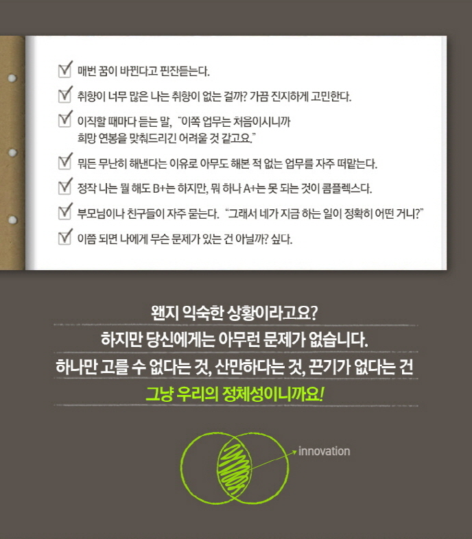처음에 이와 관련된 책(모든 것이 되는 법 - 에밀리 와프닉, 웅진지식하우스)을 발견하고선 얼마나 반가웠는지 모른다. How to be everything. 어릴 때부터 참견, 훈수, 남일을 내일처럼 끼워들기가 자연스러운 터라 기질 자체가 그러지 않았을까 한다. 하지만 목차만 훑어보고는 책은 책꽂이에 잘 보관 중이다. 이것도 다능인(?)을 유혹하는 숱한 주제들이 책들이 쉴 새 없이 의