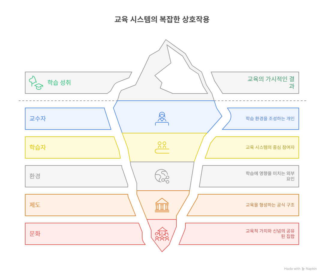 교육은 ‘닫힌 수업’이 아니라 ‘열린 시스템’이다. — 교육을 하나의 "적응적 복합계(Complex Adaptive System)"로 보는 관점이 시스템사고의 핵심이다.