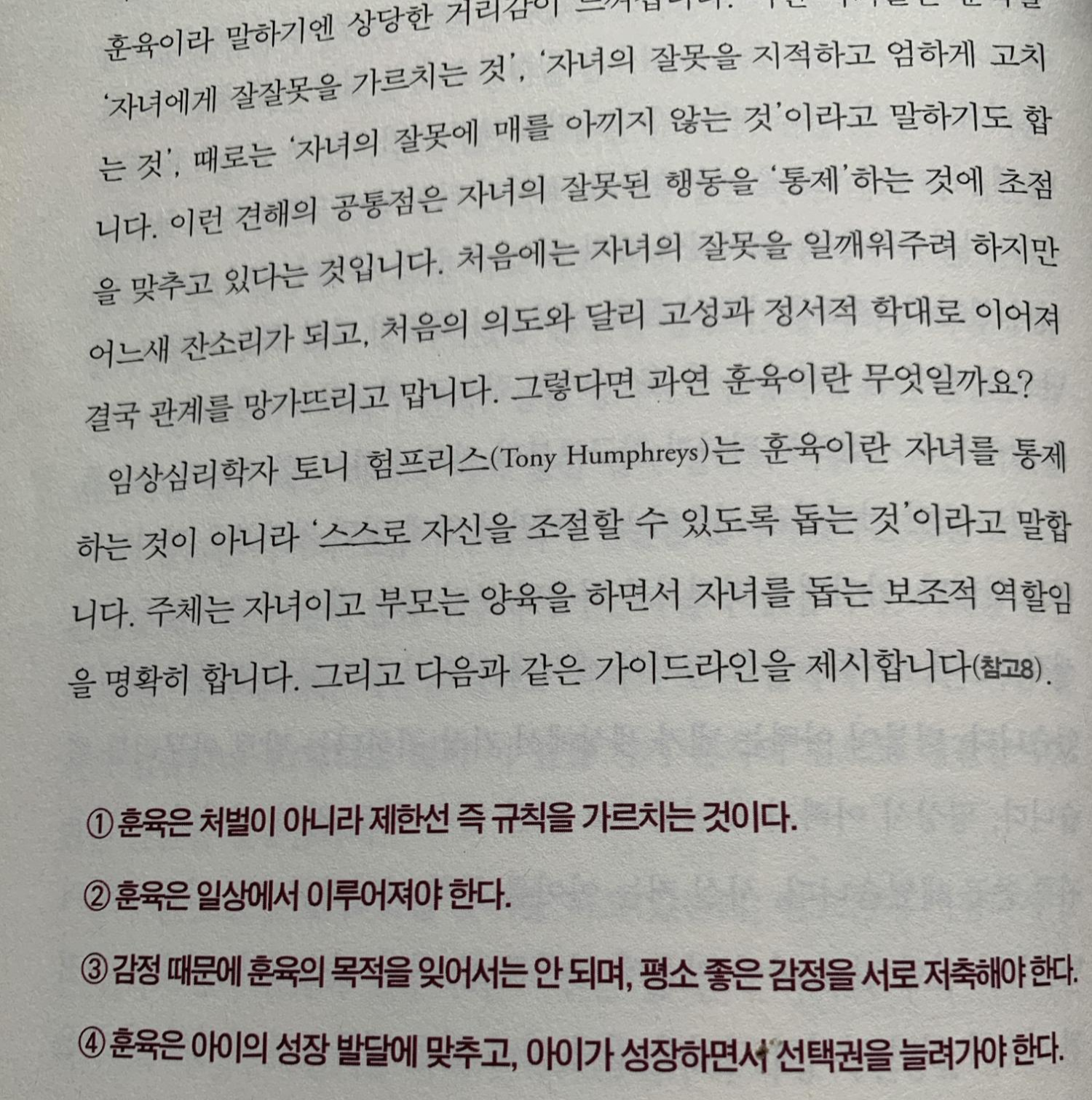 훈육은 처벌이 아니라 제한선 즉 규칙을 가르치는 것이다.