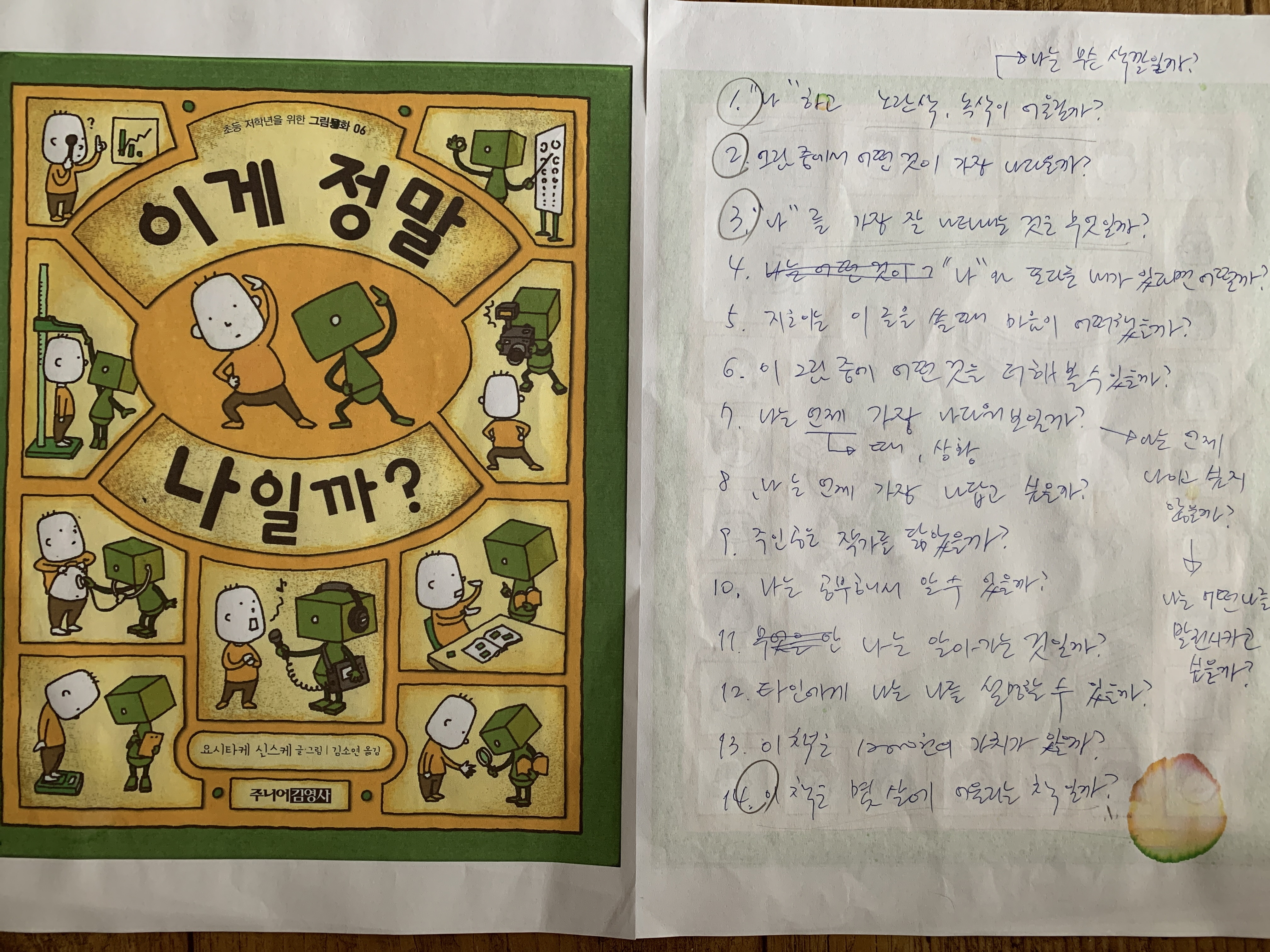 주니어김영사에서 나온 요시타케 신스케 글그림의 "이게 정말 나일까?"의 앞뒤표지만을 가지고 질문만들어 보기