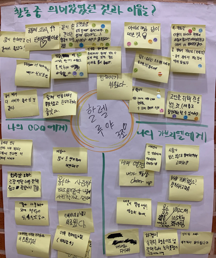 - 1. 활동 중에 의미있었던 것과 그 이유를 나누고, 스티커 3장으로 공감투표