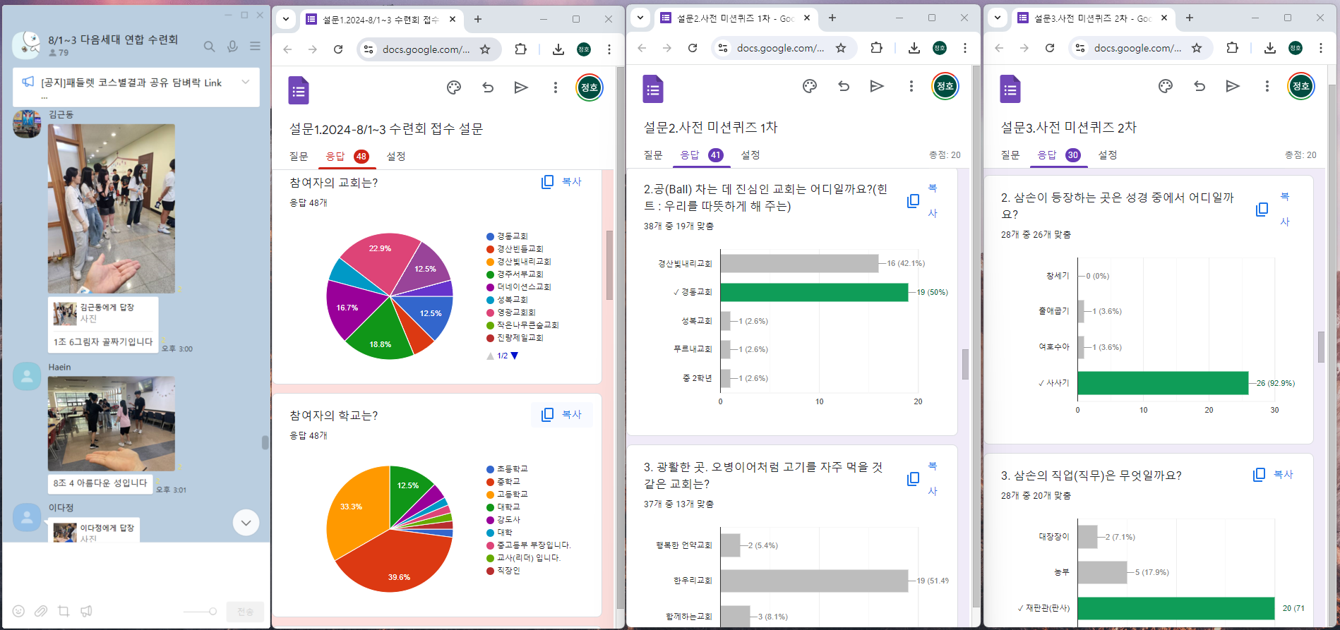 - 설문조사 1,2,3차 (2,3차는 퀴즈(득점 포인트 카운트)로 공동체 활동 및 수련회 관련 관심 붐업) - 활동 OT