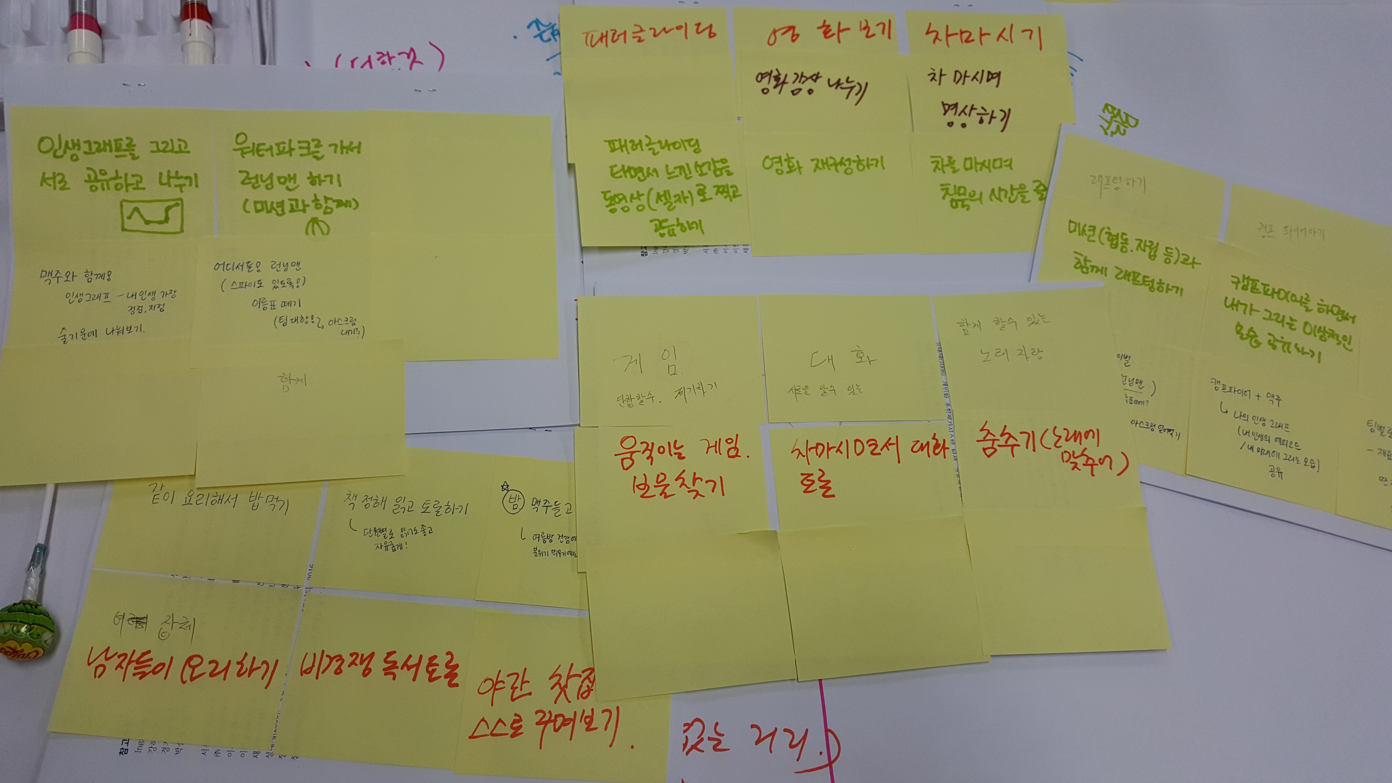 - 굵은 매직으로 메모지에는 하나의 아이디어만 작성