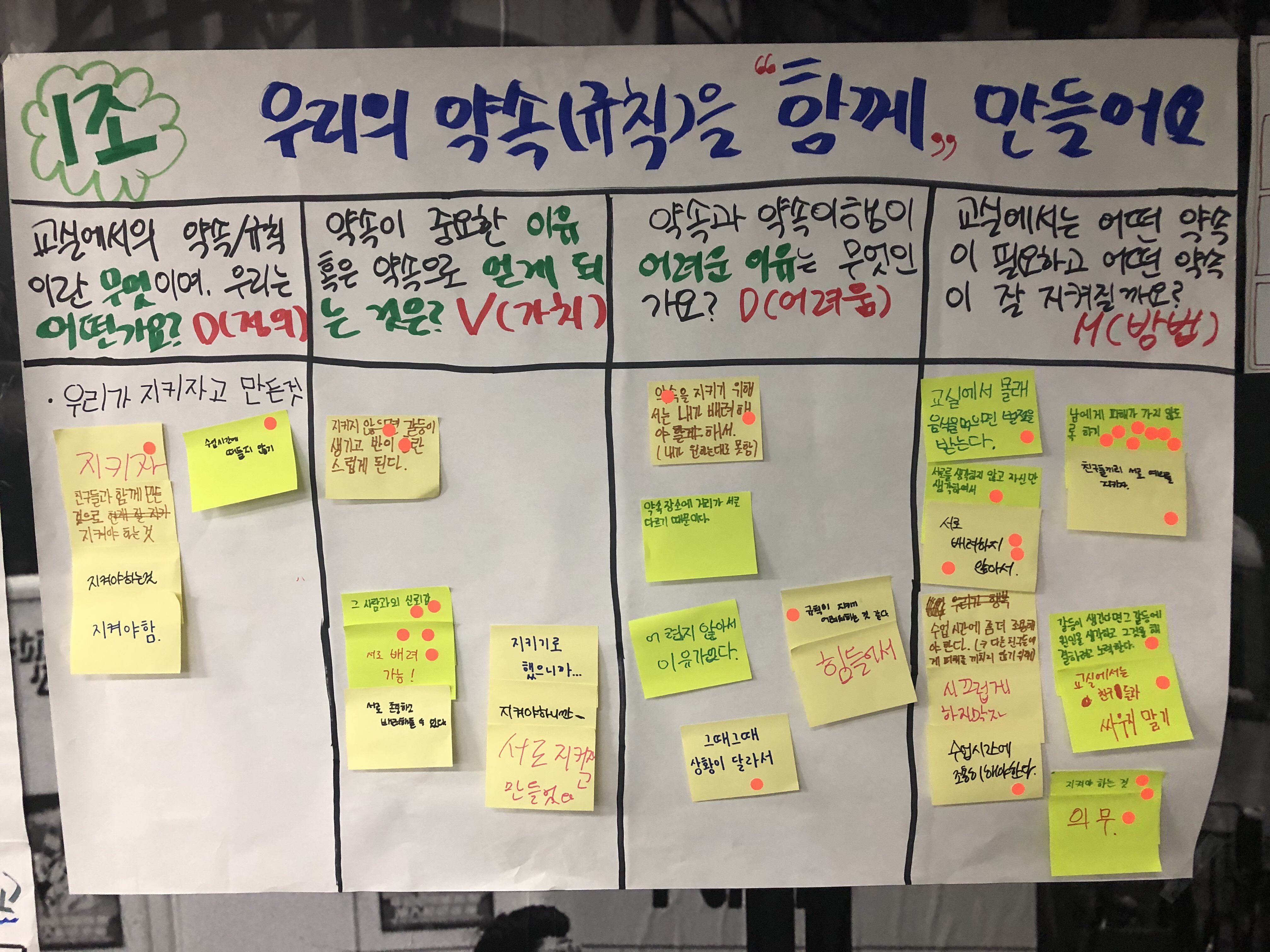 - 우리의 약속, 오늘의 순서(활동시 집중과 목적을 분명히 함으로써 활동시 집중하고 활동을 하다가 생기는 안건으로 전환되는 것을 막을 수 있음)
