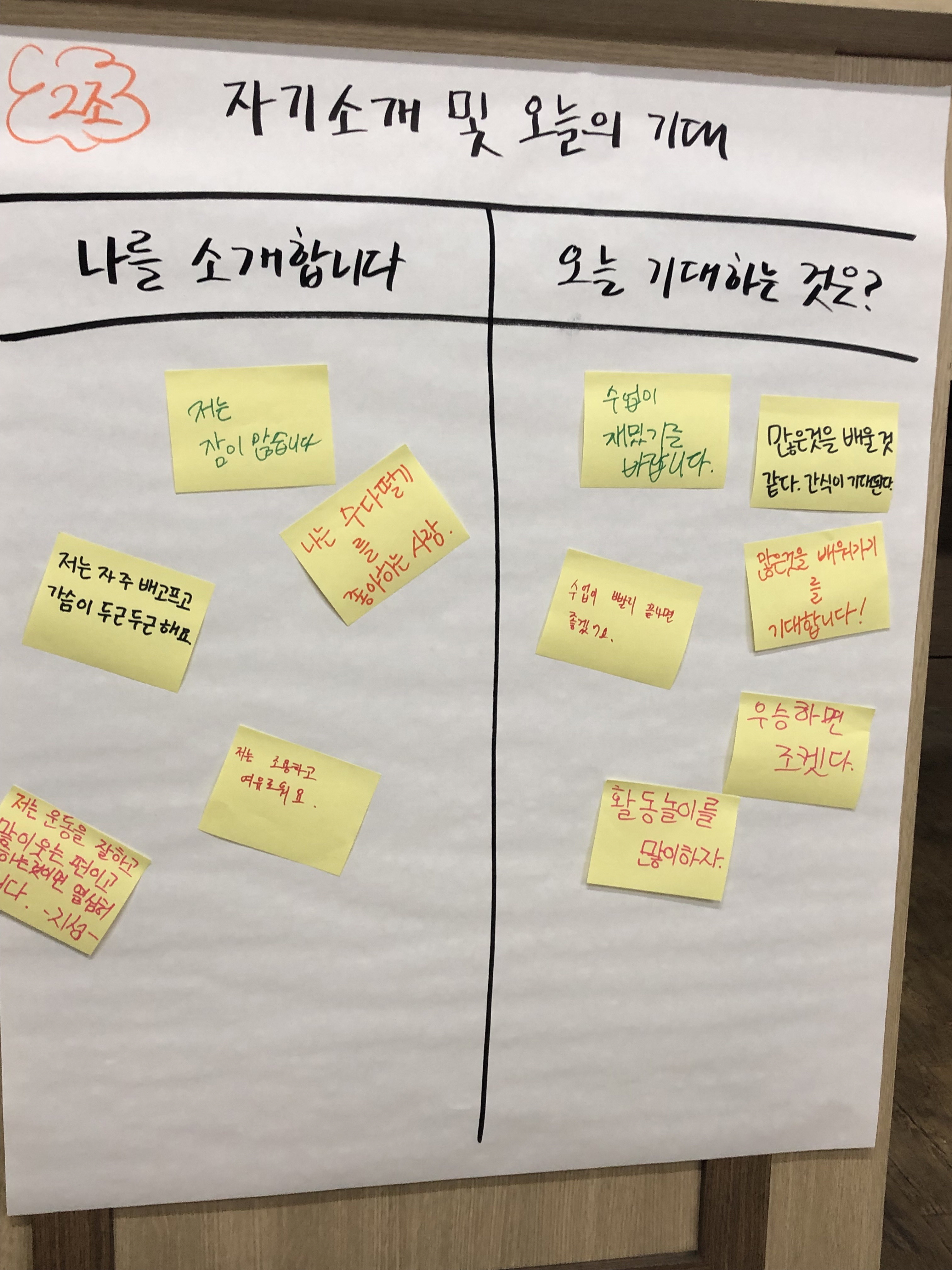 - 도구 : 전지, 이젤패드, 마커펜(유성매직), 점착 메모지, 도트 스티커, 가위, 매직테이프, 크기별 종이, 색종이 등