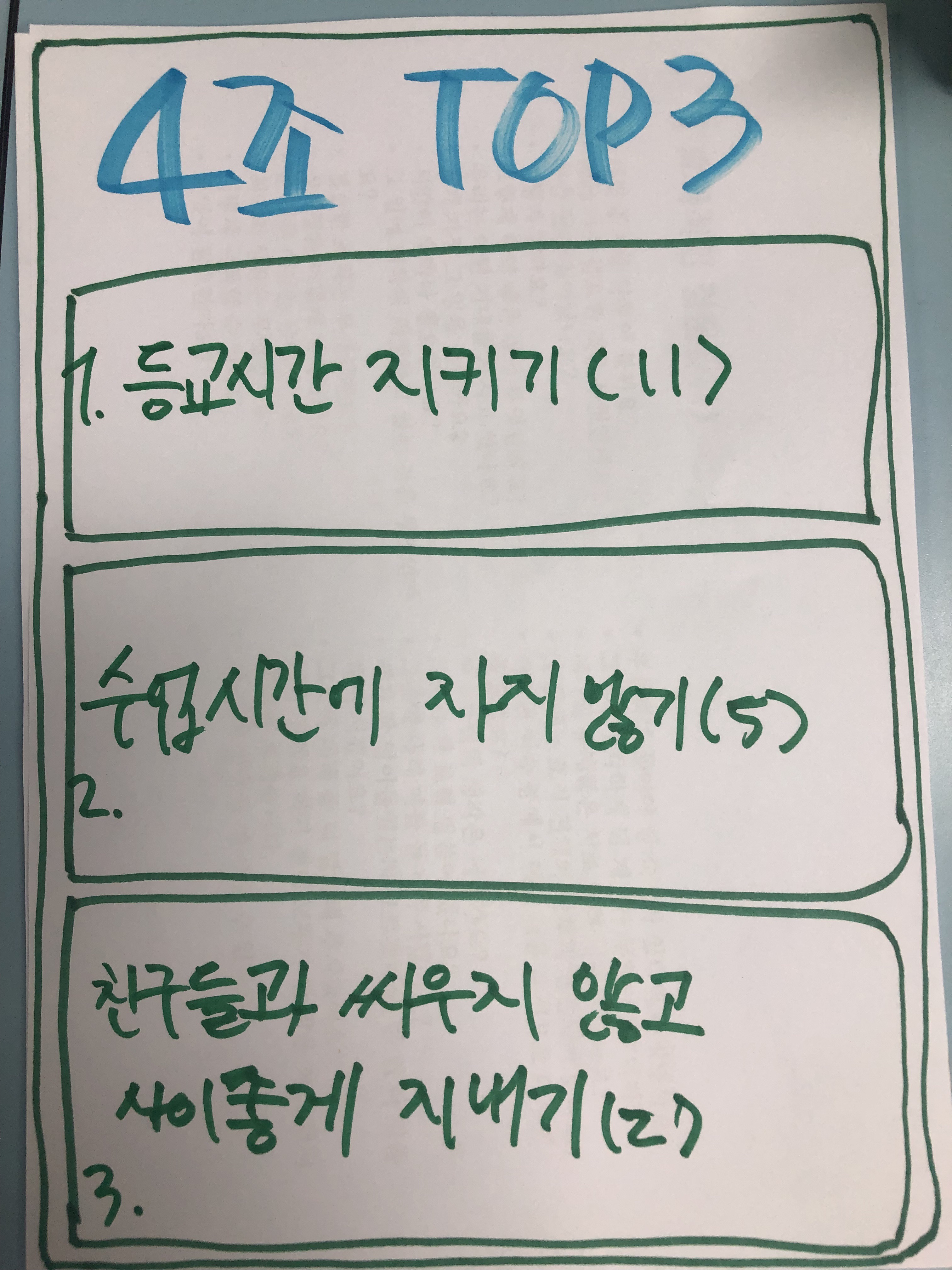 - Top3으로 아이디어를 정리하여 발표합니다.