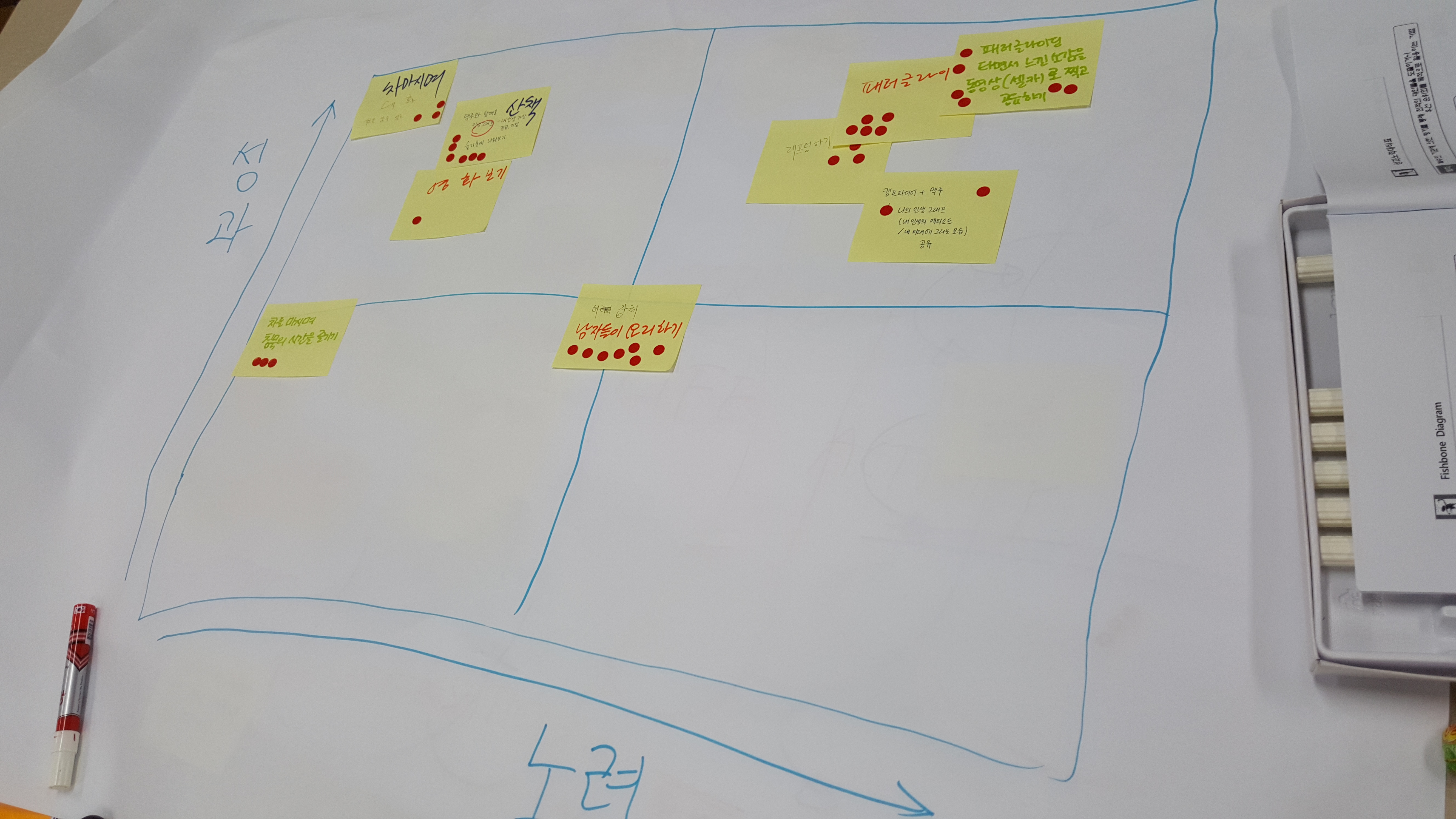 - 높은 지지에 많은 득표를 얻은 아이디어를 선택하고, 낮은 지지를 표시한 사람에게