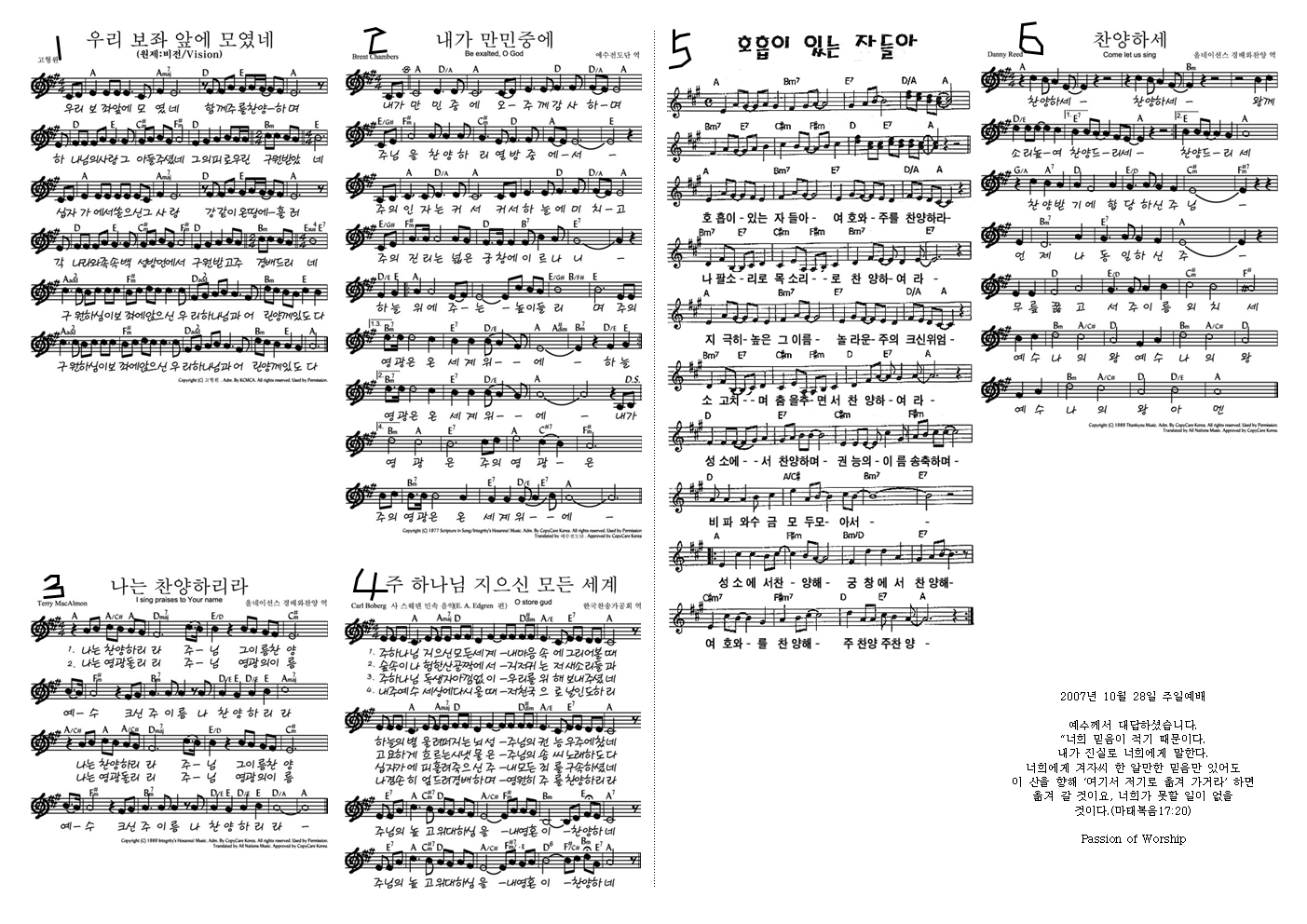 2007년 10월 7일 찬양