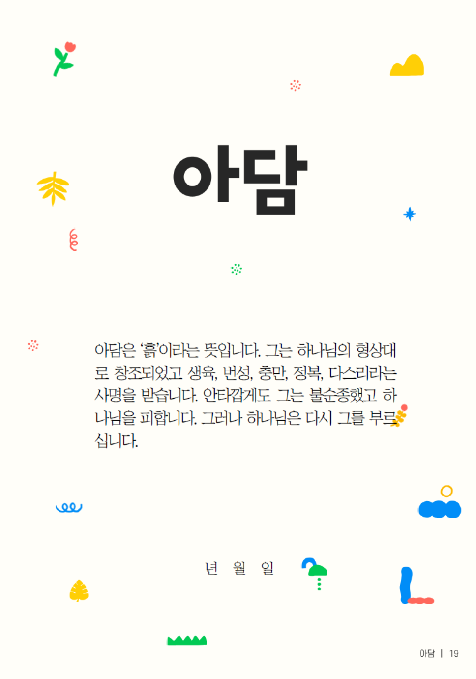 하나님 형상으로 지음받은 아담, 최초의 위임 명령을 받은 아담, 아담을 찾으시는 하나님과 관련된 활동을 진행하였습니다.