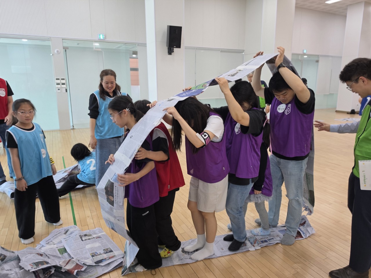 - 미니게임 : 4팀의 주장이 상대팀 팀원들을 대상으로 참참참 게임으로 패스한 수량만큼 신문지와 테이프 제공
