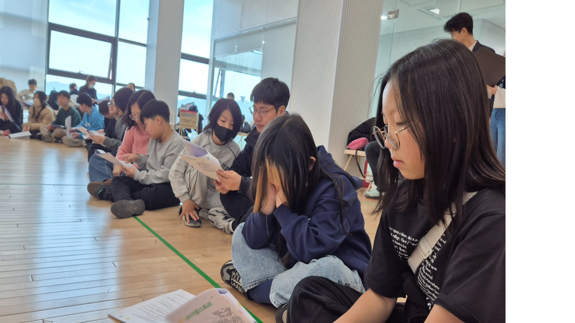 - 3명의 학생이 스킷드라마의 대본을 읽으면서 배경 이해