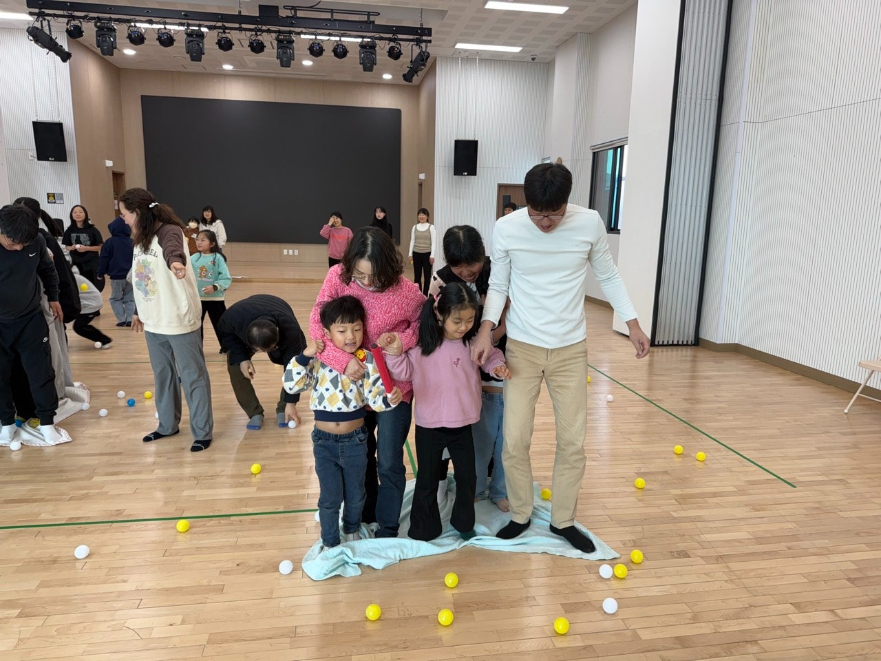 - 잠잠하라 : 커다란 천 위에 팀원들이 함께 올라서서 풍랑(볼풀공의 공격)을 뚫고 전진하기